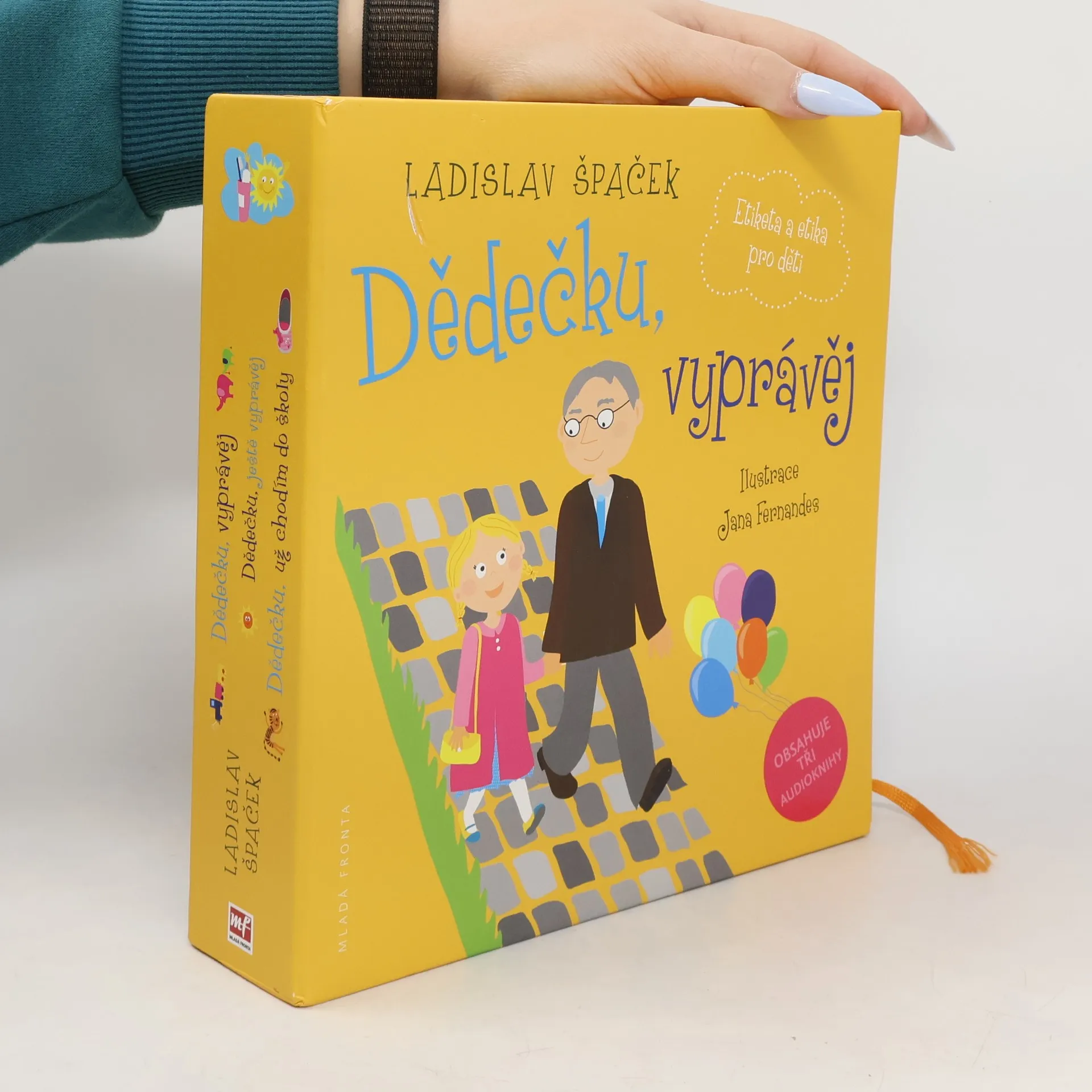 Dědečku, vyprávěj Dědečku, ještě vyprávěj Dědečku, už chodím do školy Slušné chování je to nejcennější, co mohou rodiče svým dětem dát. Naučit je zdravit, vhodně se oblékat, chovat se zdvořile na ulici, na návštěvě či v restauraci, vypěstovat v dětech správné návyky, jak držet příbor a sklenici nebo jak sedět u stolu – to jsou hodnoty, které je budou provázet celý život a do značné míry mohou rozhodovat o tom, zda se jednou stanou úspěšnými v profesním i osobním životě. Všemi třemi díly Špačkovy etikety a etiky pro děti provází čtenáře dědeček a jeho zvídavá vnučka Viktorka. Spolu s ní se děti naučí, jak se zachovat v různých situacích, které život přináší, a začnou si utvářet pohled na svět kolem sebe. Vhodné pro nejmenší, předškoláky i děti školou povinné.