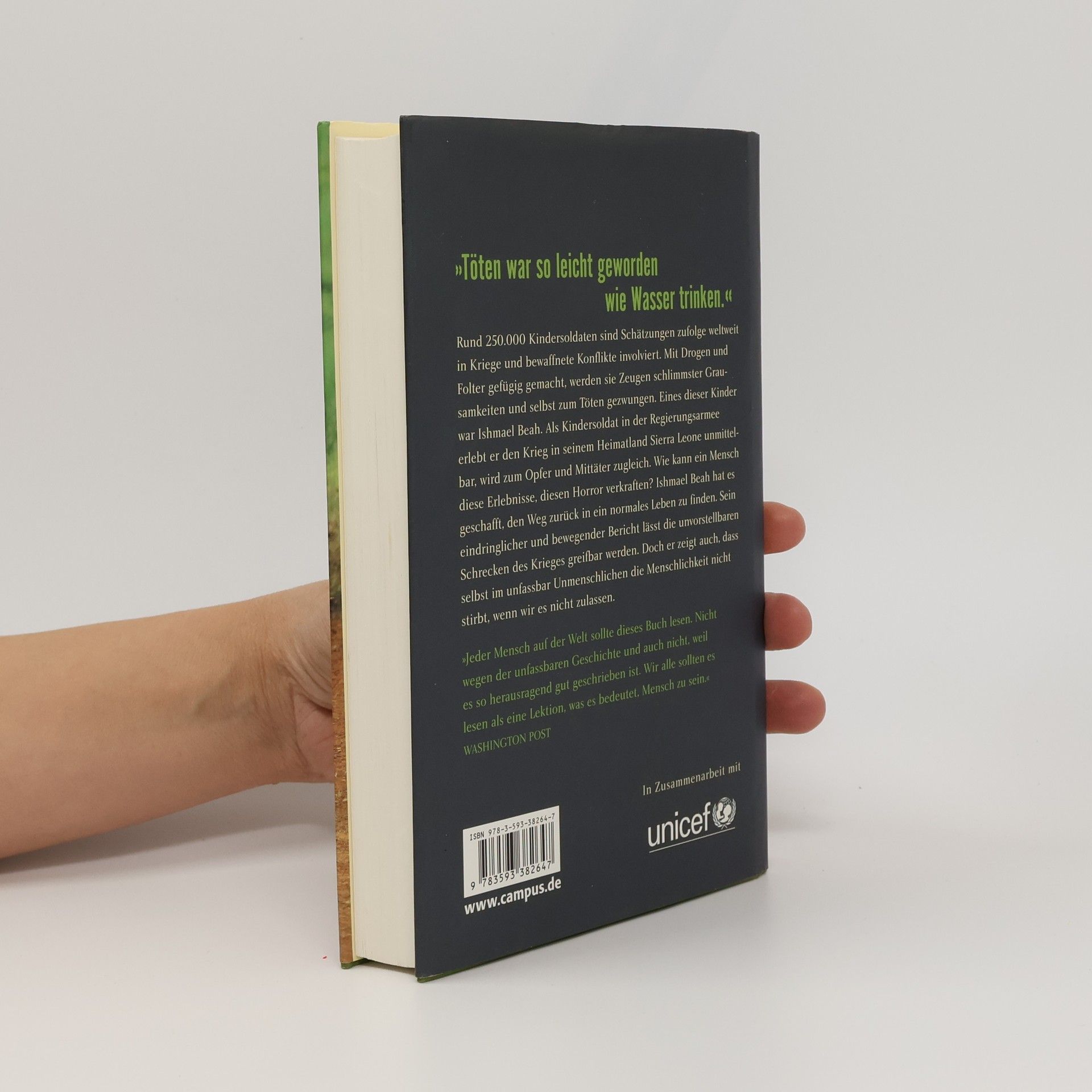 Der autobiografische Bericht des ehemaligen Kindersoldaten Ishmael Beah aus Sierra Leone beginnt mit seiner Kindheit, in der er ein fröhlicher Junge ist, der Hip-Hop liebt und Shakespeare liest. Im Alter von 12 Jahren bricht der Bürgerkrieg aus, als er mit Freunden zu einem Hip-Hop-Wettbewerb aufbricht. Sein normales Leben endet abrupt. Ishmael überlebt mit anderen Kindern im Urwald, bis er von der nationalen Armee als Kindersoldat rekrutiert wird. In den folgenden drei Jahren wird er Zeuge von Folter und Mord und begeht selbst Grausamkeiten. Dank eines Rehabilitationscamps von UNICEF findet er als einer der wenigen den Weg zurück ins normale Leben, trotz seiner traumatischen Erlebnisse. Das Buch beleuchtet sowohl die schreckliche Zeit als Kindersoldat als auch Ishmaels Kindheit und sein Leben nach dem Krieg. Es bietet Einblicke in seine damaligen Gedanken und Gefühle sowie seine heutige, reflektierende Sichtweise. Diese beiden Perspektiven sind entscheidend für das Verständnis seiner Rolle als Opfer und Täter. Ishmael geht offen mit seinen Erfahrungen um, und die detaillierten Schilderungen der Grausamkeiten sind brutal und oft unfassbar. Sein persönliches Schicksal steht im Mittelpunkt, während die politische Situation nicht kommentiert wird, was Ishmaels damalige Unkenntnis über die Ursachen des Krieges widerspiegelt. Eine Zeittafel und eine Landkarte ergänzen den Bericht.