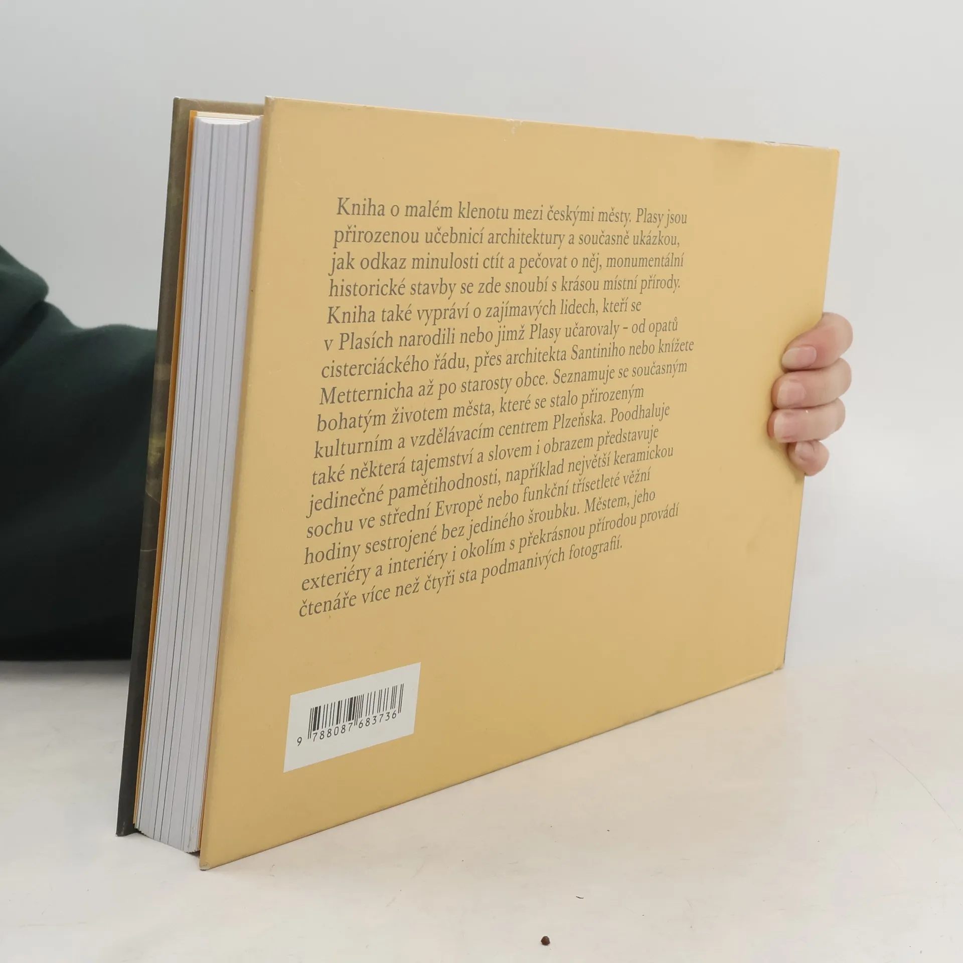 Kniha o malém klenotu mezi českými městy. Plasy jsou přirozenou učebnicí architektury a současně ukázkou, jak odkaz minulosti ctít a pečovat o něj, monumentální historické stavby se zde snoubí s krásou místní přírody. Kniha také vypráví o zajímavých lidech, kteří se v Plasích narodili nebo jimž Plasy učarovaly – od opatů cisterciáckého řádu, přes architekta Santiniho nebo knížete Metternicha až po starosty obce. Seznamuje se současným bohatým životem města, které se stalo přirozeným kulturním a vzdělávacím centrem Plzeňska. Poodhaluje také některá tajemství a slovem i obrazem představuje jedinečné pamětihodnosti, například největší keramickou sochu ve střední Evropě nebo funkční třísetleté věžní hodiny sestrojené bez jediného šroubku. Městem, jeho exteriéry a interiéry i okolím s překrásnou přírodou provádí čtenáře více než čtyři sta podmanivých fotografií.