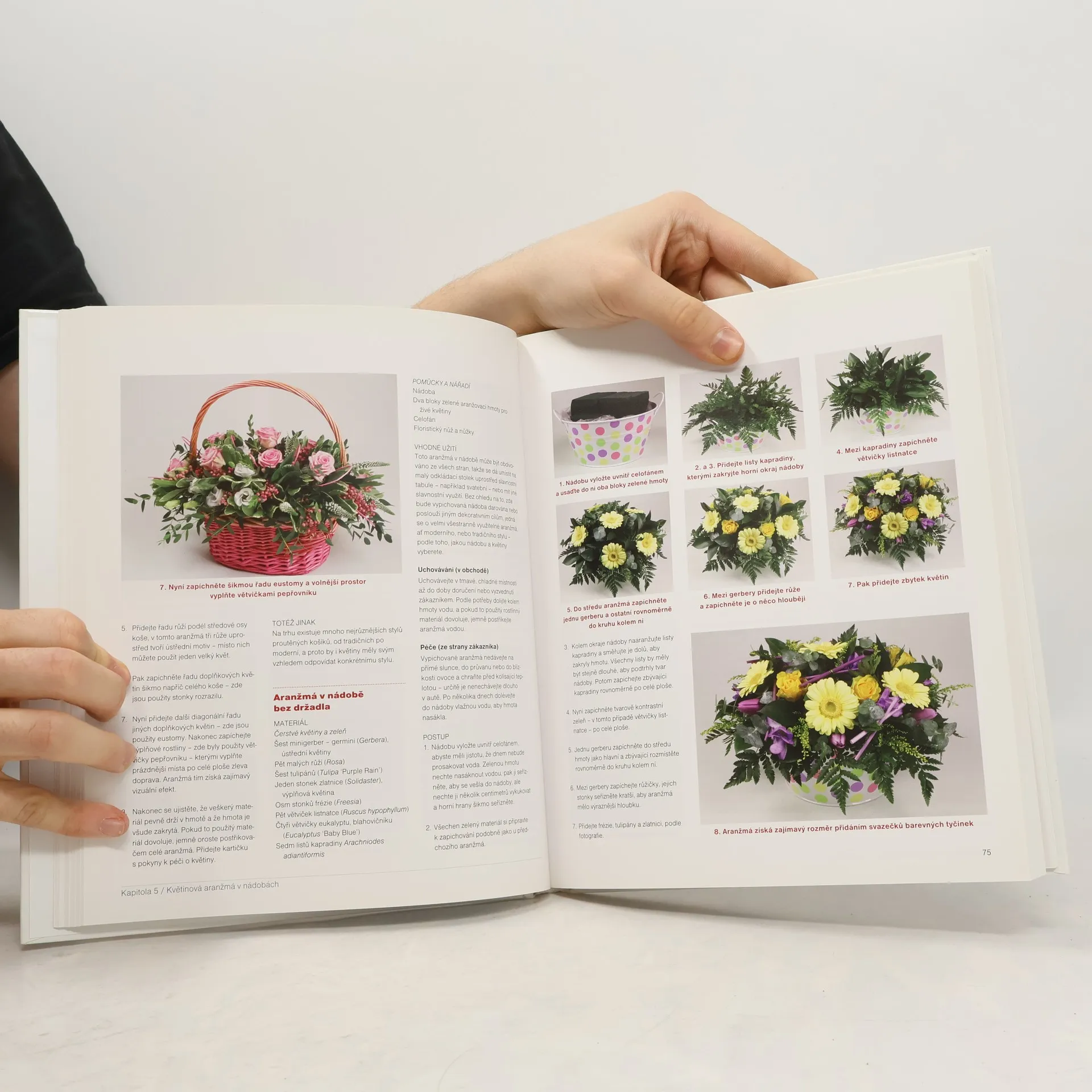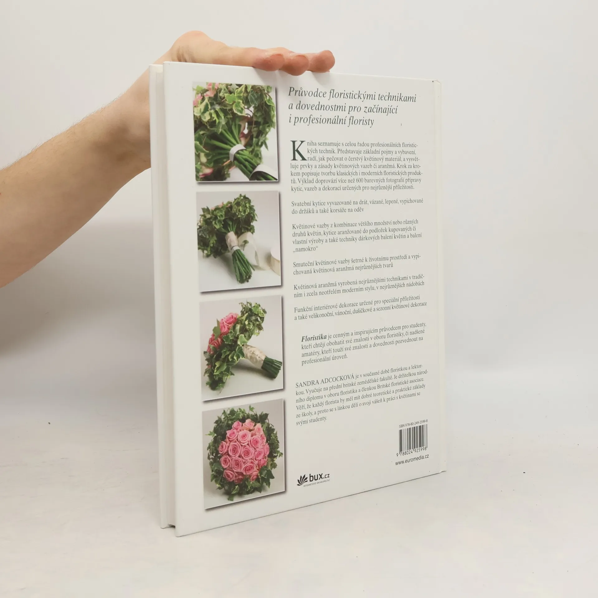 Kniha seznamuje s profesionálními floristickými technikami. Představuje základní pojmy, radí, jak pečovat o čerstvý květinový materiál, a vysvětluje prvky a zásady květinových vazeb či aranžmá. Krok za krokem popisuje tvorbu klasických i moderních floristických produktů. Výklad doprovází více než 600 barevných fotografií přípravy kytic, vazeb a dekorací určených pro nejrůznější příležitosti: svatbu, rodinná jubilea, pohřeb, Velikonoce, Vánoce nebo nabízí dárková balení květin.