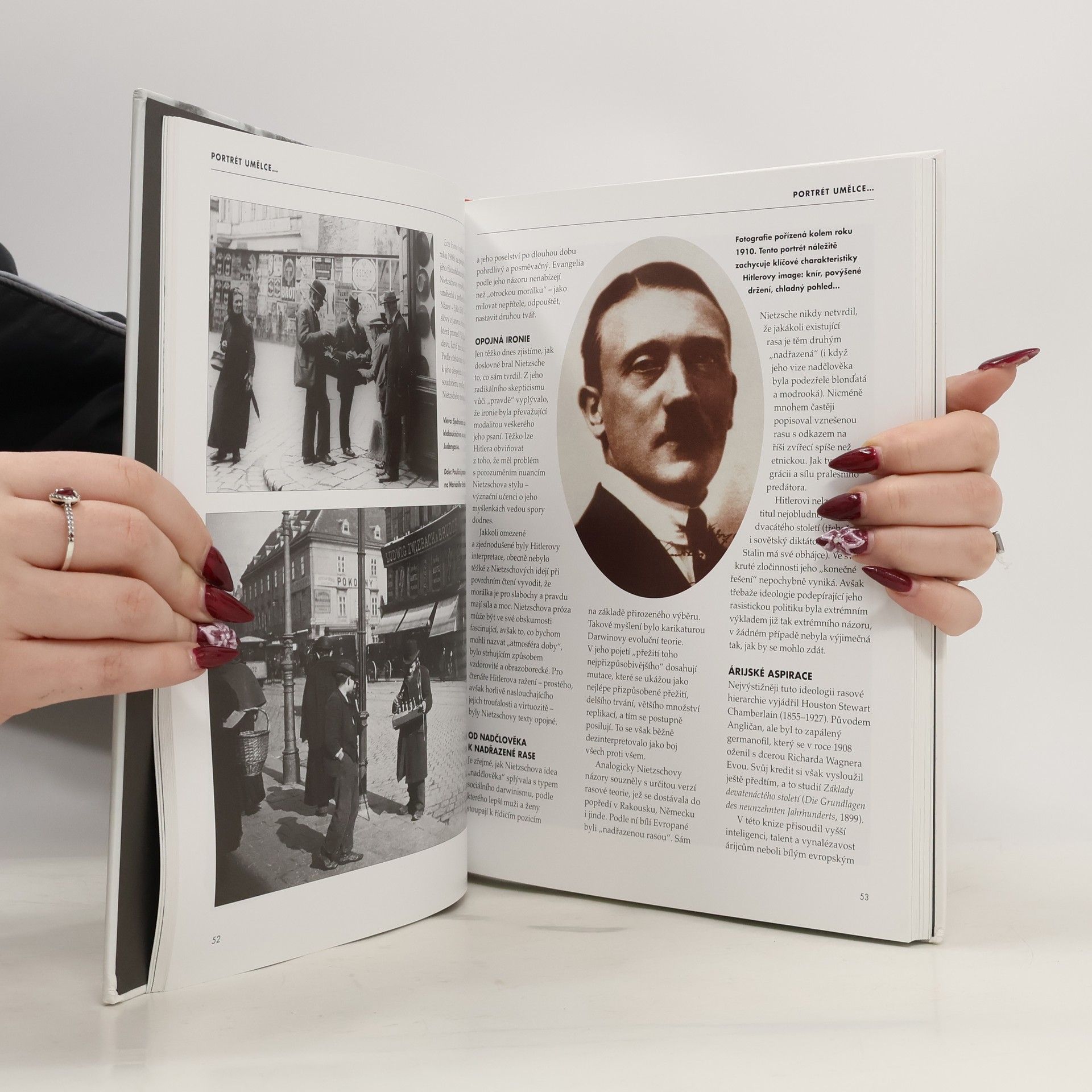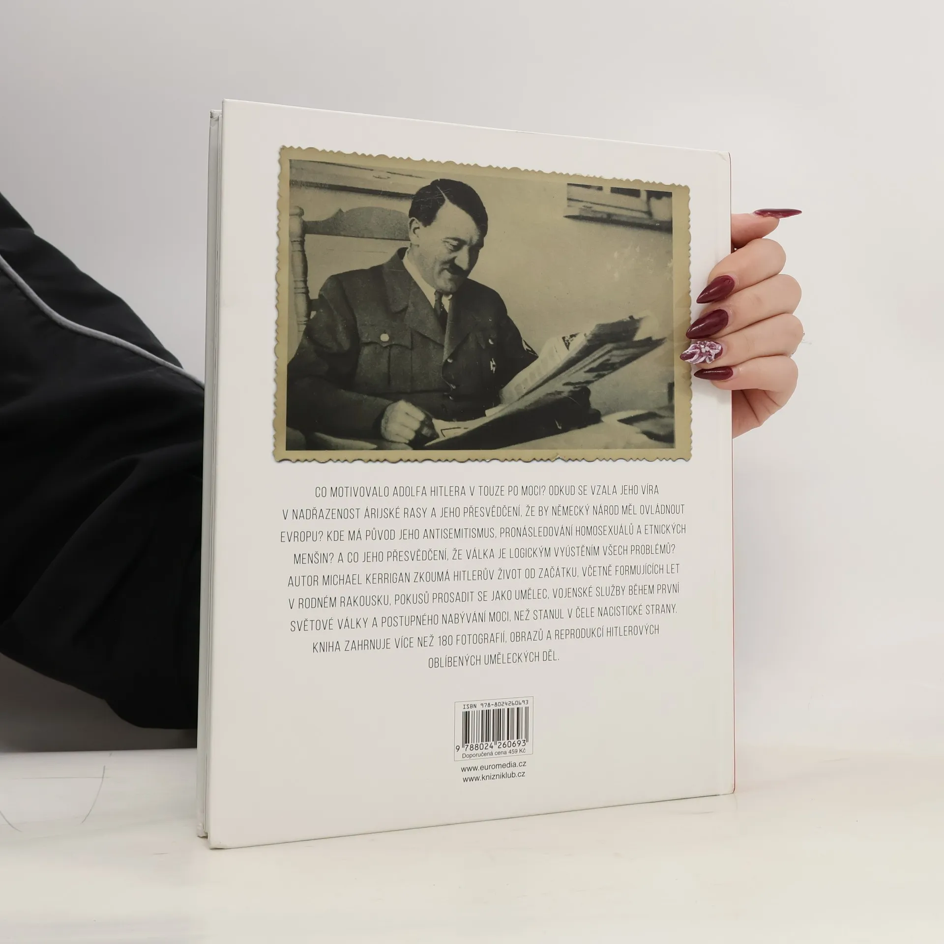 Poněkud netradiční biografie o Hitlerovi se zabývá otázkou: Jak se z člověka pocházejícího z běžného, ničím nápadného prostředí stalo monstrum zodpovědné za smrt milionů lidí. Z jakých poměrů pocházel? Jaký měl vztah k matce i ostatním ženám? Jaké momenty utvářely jeho osobnost? Kde byl zrod jeho antisemitismu, nenávisti k homosexuálům a přesvědčení o nadřazenosti německého národa? Kniha je bohatě doprovázena fotografiemi, mnohé z nich jsou barevné, a také portréty či reprodukcemi Hitlerových oblíbených uměleckých děl.