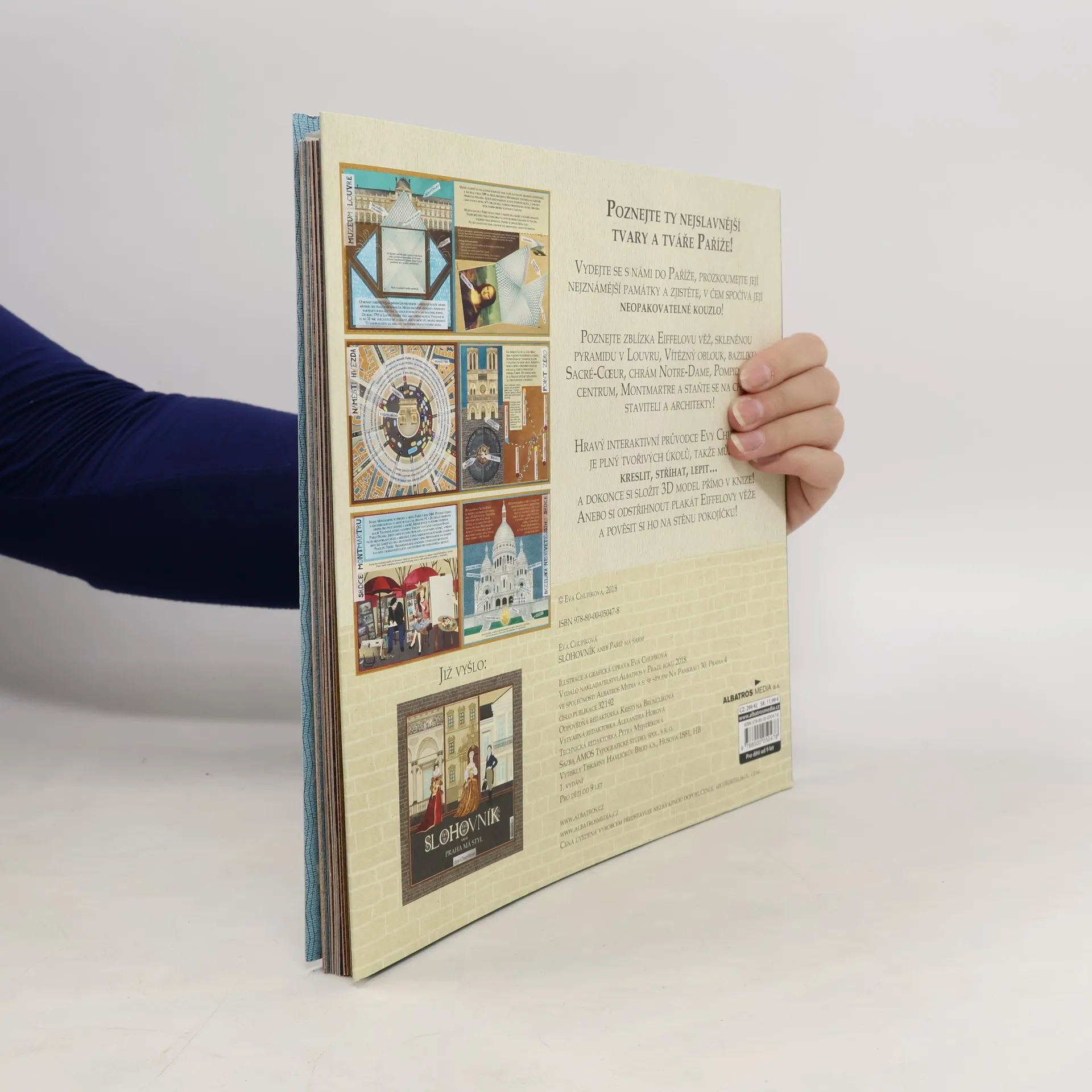 Vydejte se s námi do Paříže, prozkoumejte její nejznámější památky a zjistěte, v čem spočívá její neopakovatelné kouzlo! Poznejte zblízka Eiffelovu věž, skleněnou pyramidu v Louvru, Vítězný oblouk, baziliku Sacré-Coeur, chrám Notre-Dame, Pompiduovo centrum, Montmartre a staňte se na chvíli staviteli a architekty! Hravý interaktivní průvodce Evy Chupíkové je plný tvořivých úkolů, takže můžete kreslit, stříhat, lepit… a dokonce si složit 3D model přímo v knize! Anebo si odstřihnout plakát Eiffelovy věže!