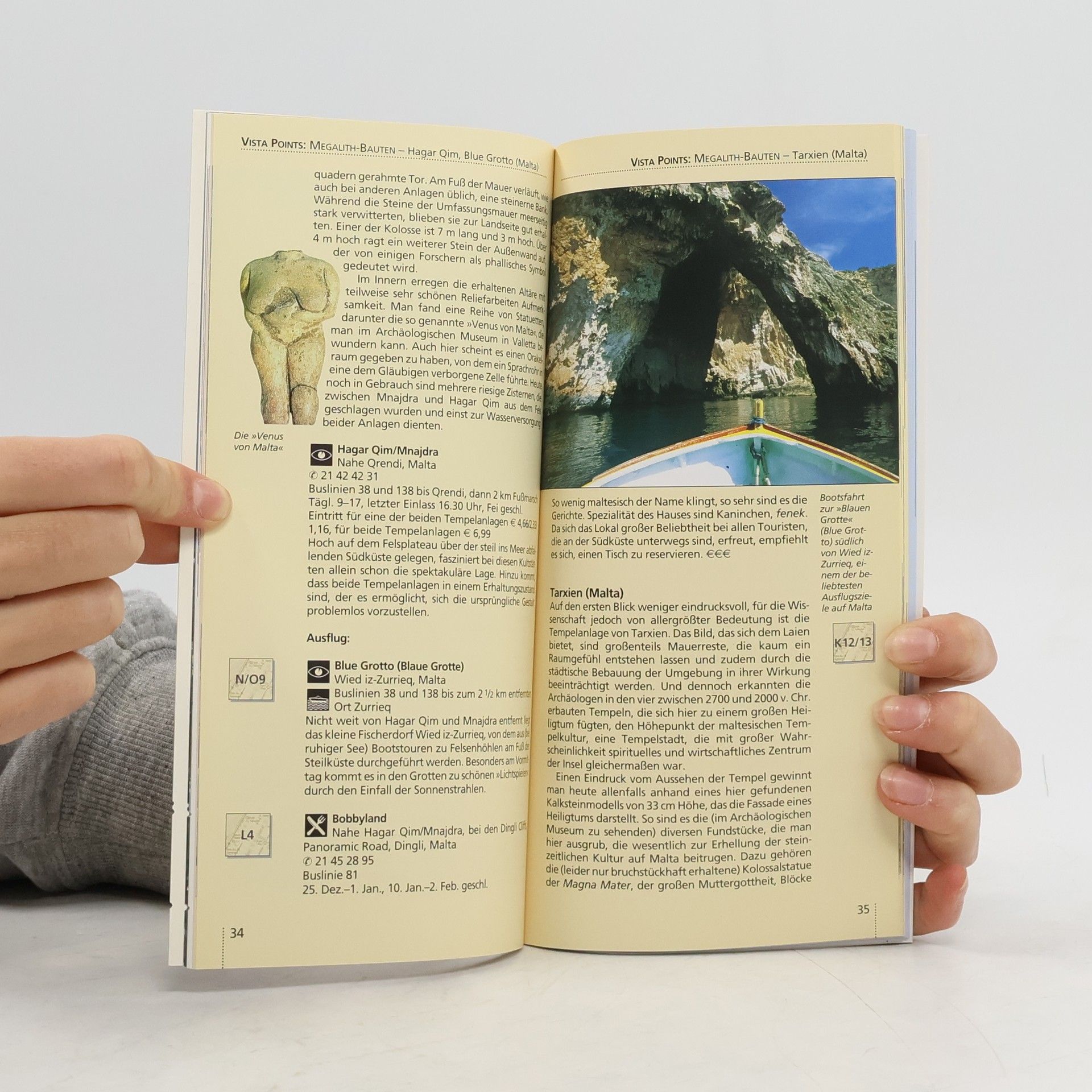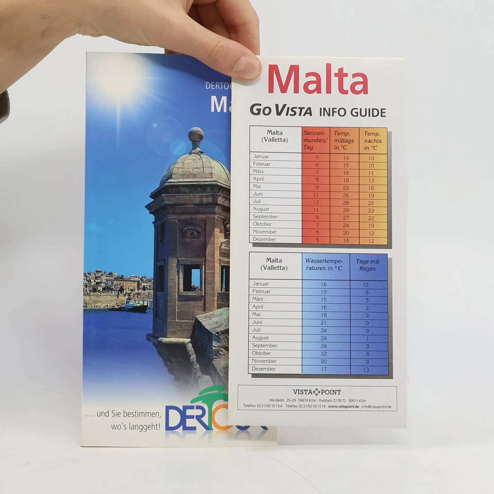Die kleine Inselgruppe scheint wie ein letzter Brückenkopf zwischen Sizilien und Tunesien verankert. Gerade diese Lage bestimmte über die Jahrtausende das wechselhafte Schicksal der Inseln Malta, Gozo und Comino. Neben dem vielfältigen Kulturerbe ist es die mediterrane Lage, das angenehme Klima und kristallklares Wasser, was Besucher lockt - und sei es, um das, was die letzten Besatzer den Inseln vermachten, die englische Sprache, unter unbritisch blauem Himmel zu erlernen. Der Go Vista stellt die drei Inseln mit deren Sehenswürdigkeiten vor und gibt Tipps für Restaurants, Nightlife und Shopping. Die Stadt Valletta wird mit einem eigenen Kapitel gewürdigt. Das Kapitel "„Service“„ liefert alle wichtigen informationen von Anreise über Strände bis Zeit. Die ausfaltbare Karte, auch mit Stadtplänen von Valletta, Victoria, Mdina & Rabat und den “„Three Cities“", hilft bei der Orientierung vor Ort.