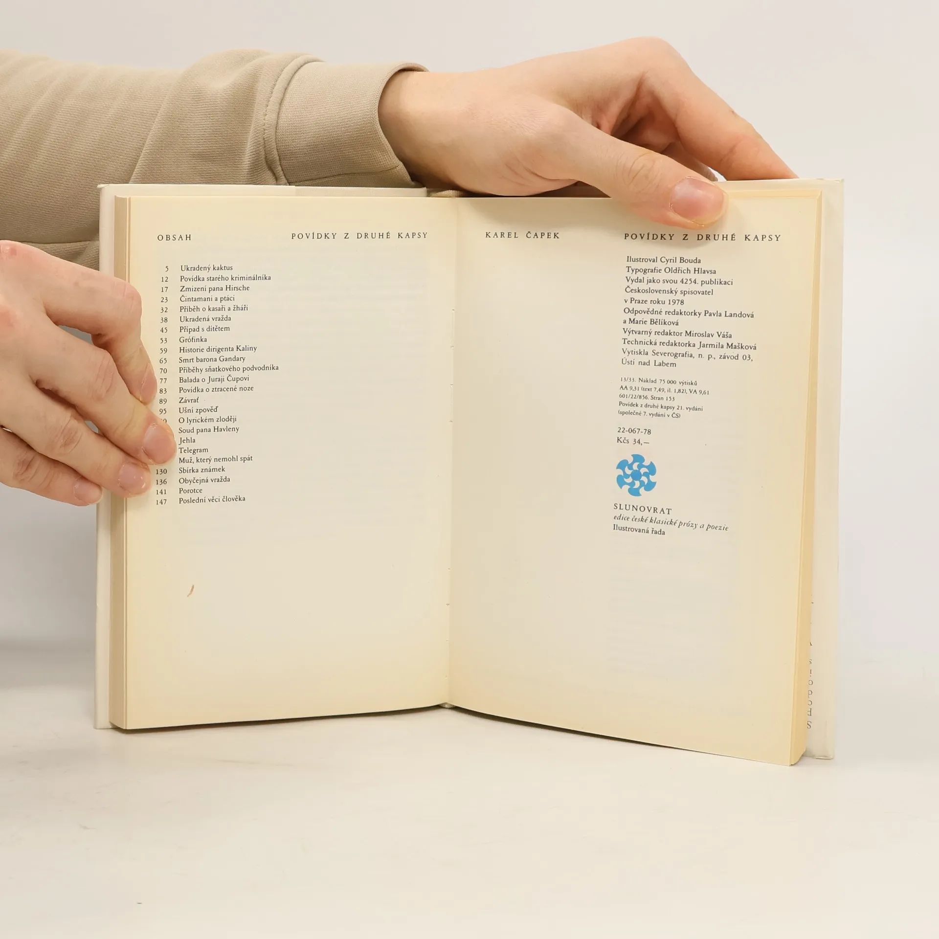 Povídek z jedné kapsy 27. vyd., Povídek z druhé kapsy 21. vyd., (Společné 7. vyd. v ČS). Tisk zvratmo. Sborník detektivních povídek z pera Karla Čapka patří ke skvostům české moderní prózy a právem náleží do zlatého fondu české literatury. Příběhy s kriminální zápletkou autor povýšil na studie člověčenství, které dokáží vždy překvapit a zaujmout. Náměty povídek jsou natolik originální, že byly mnohokrát použity pro filmové zpracování. Klasická díla Karla Čapka jsou ozdobou každé knihovny!