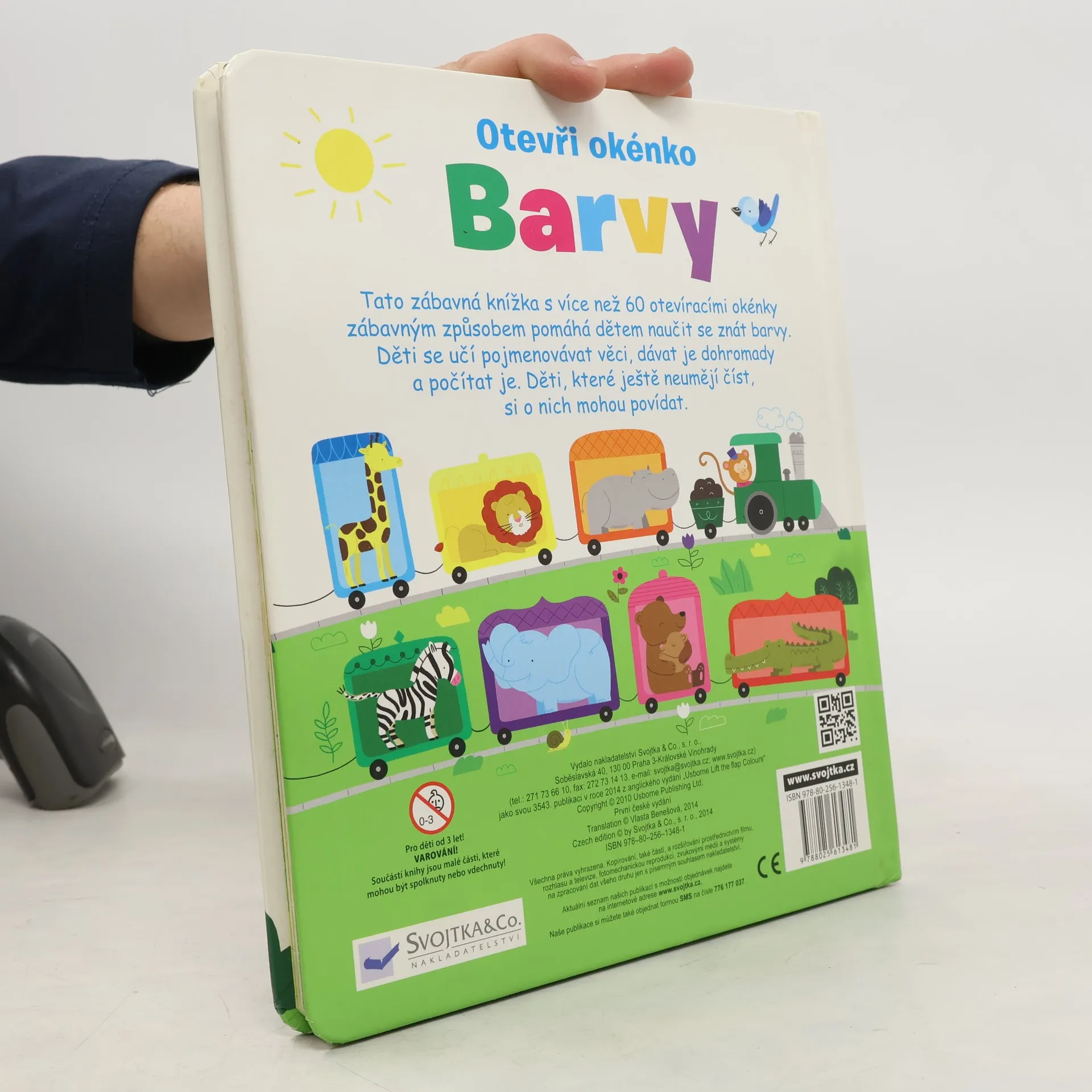 Kartonové listy s odklápěcími okénky v pevné vazbě. Leporelo pro nejmenší s otevíracími okénky. Otevřete okénka a naučte vaše dítě základní barvy, počítat věci, dávat je dohromady, počítat do 5 a mnoho dalšího. Jaké jsou základní barvy? Podívej se pod okénko! Odklop okénko a podívej se, kdo se veze v růžovém vagonu barevného vláčku! Podívej se za stromy, jakou barvu mají zvířátka, která se tam schovávají? Najdi schované hračky v obchodě. Kolik jich je? Tato zábavná interaktivní knížka s více než 60 otevíracími okénky obsahuje ještě spoustu dalších zábavných cvičení, která pomáhají dětem naučit se poznávat barvy, pojmenovávat věci, dávat je dohromady a počítat do 5. Děti, které ještě neumějí číst, si o nich mohou alespoň popovídat.