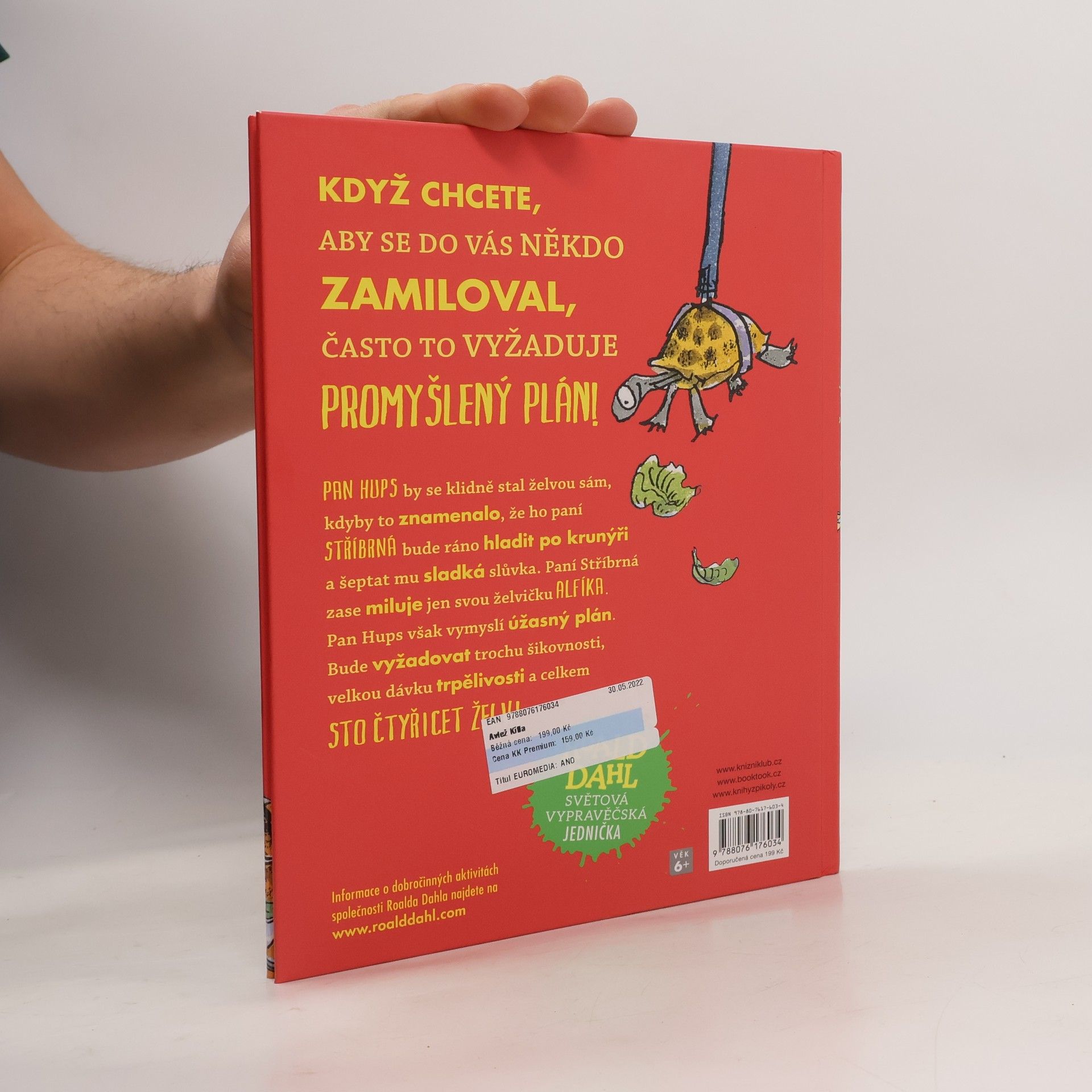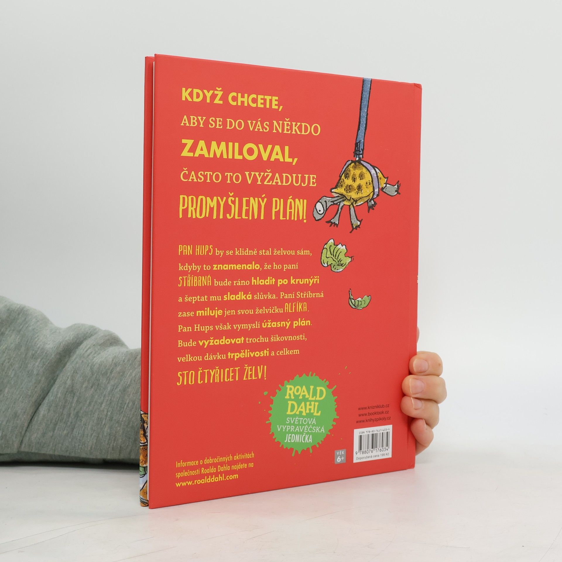 Pan Hoppy by se klidně stal želvou, kdyby to znamenalo, že ho paní Silverová bude ráno hladit po krunýři a šeptat mu sladká slůvka. Pan Hoppy totiž žije sám a má dvě velké lásky: květiny, které pěstuje na balkoně, a ovdovělou paní Silverovou, jež bydlí pod ním. Paní Silverová bohužel miluje jen svou želvu Alfíka. Pan Hoppy ale vymyslí úžasný plán, jak z Alfíka udělat větší a lepší želvu. Bude vyžadovat trochu šikovnosti, velkou dávku trpělivosti a celkem 140 želv! Kniha je určena čtenáře od 6 let.
