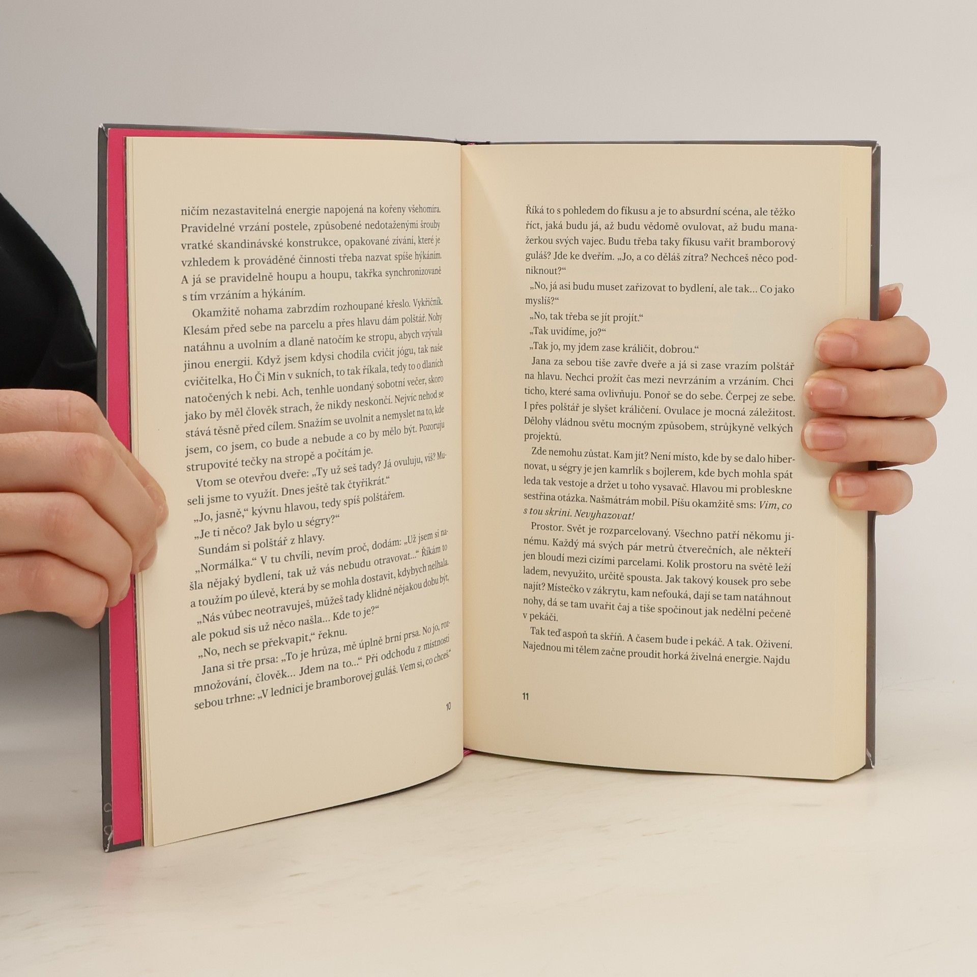 Hlavní hrdinka nové prózy Terezy Semotamové žije v nespokojeném vztahu v cizině; po nevyjasněné smrti partnera se vrací do rodné země, kde však nemá kde žít (ostatně ani neví jak), a tak vezme zavděk skříní, kterou její sestra hodlá vyhodit. Skříň umístí do vnitrobloku a nastěhuje se do ní. Bizarní východisko textu se postupně stává metaforou hledání prostoru na tomto světě, do nějž se projektuje vztah k rodině, mužům, kamarádům, k sobě samé. Jsme svědky hrdinčina boje o holou existenci; vypravěčka jej sice vytěsňuje, nakonec však není zbytí. Léto totiž končí a do skříně zatéká. Bezejmenná vypravěčka nás provádí svou životní krizí, do níž vyústil nedávno skončený trýznivý partnerský vztah. Její vyprávění však nezabředává do nějaké uvzdychané sebelítosti (jíž se podobný typ psaní tak často nedokáže vyhnout), a to především díky živosti jazyka, prodchnutého slangovými obraty, popkulturními narážkami, všemožnými hříčkami, do nějž se ovšem tu a tam vlamují i „vyšší“, abstraktnější polohy, zejména v reflexivních, až meditativních pasážích, které tvoří jakýsi refrén vypravěččina monologu. Před čtenářem se tak postupně skládá jakási tragikomická mozaika, v níž se odráží jedna etapa života mladé ženy, etapa plná nálezů a ztrát, strnulosti, ale také odhodlání žít jinak a touhy po lásce.