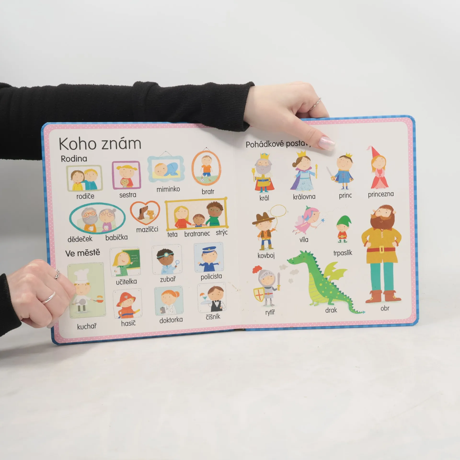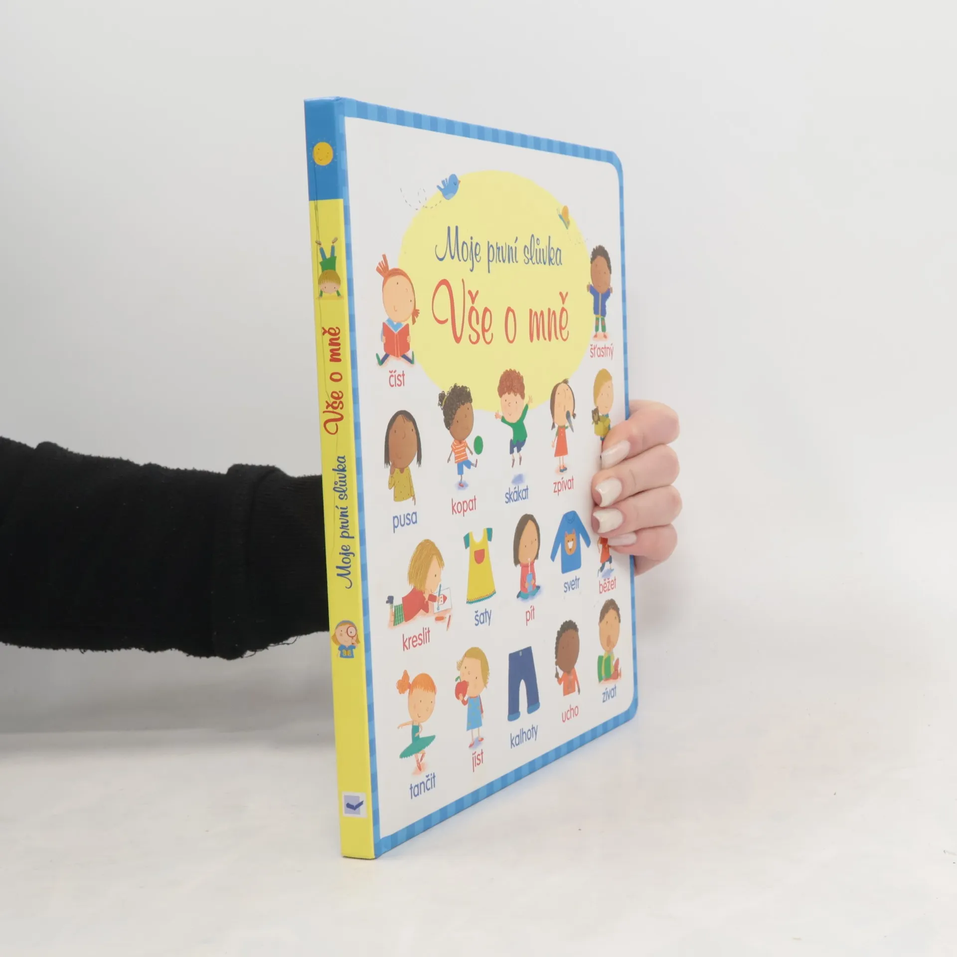 Tato jednoduchá, roztomilá knížka pokrývá základní slovní zásobu, kterou by předškolní dítě již mělo znát. Funguje jako obrázkový slovník a je rozdělena do témat: tělo, dovednosti, oblečení, dům, předměty, průběh dne, město, potraviny, místa, lidé, pocity, smysly. V centru je vždy dítě samo a jevy, které jej bezprostředně obklopují. Dítě se tak učí poznávat a náležitě pojmenovávat to, co je pro něj doopravdy podstatné, z čeho se skládá jeho život a co naplňuje jeho den. Ilustrace napomáhají názornosti a přispívají ke snazšímu zapamatování zobrazených jevů a odpovídajících slovíček.