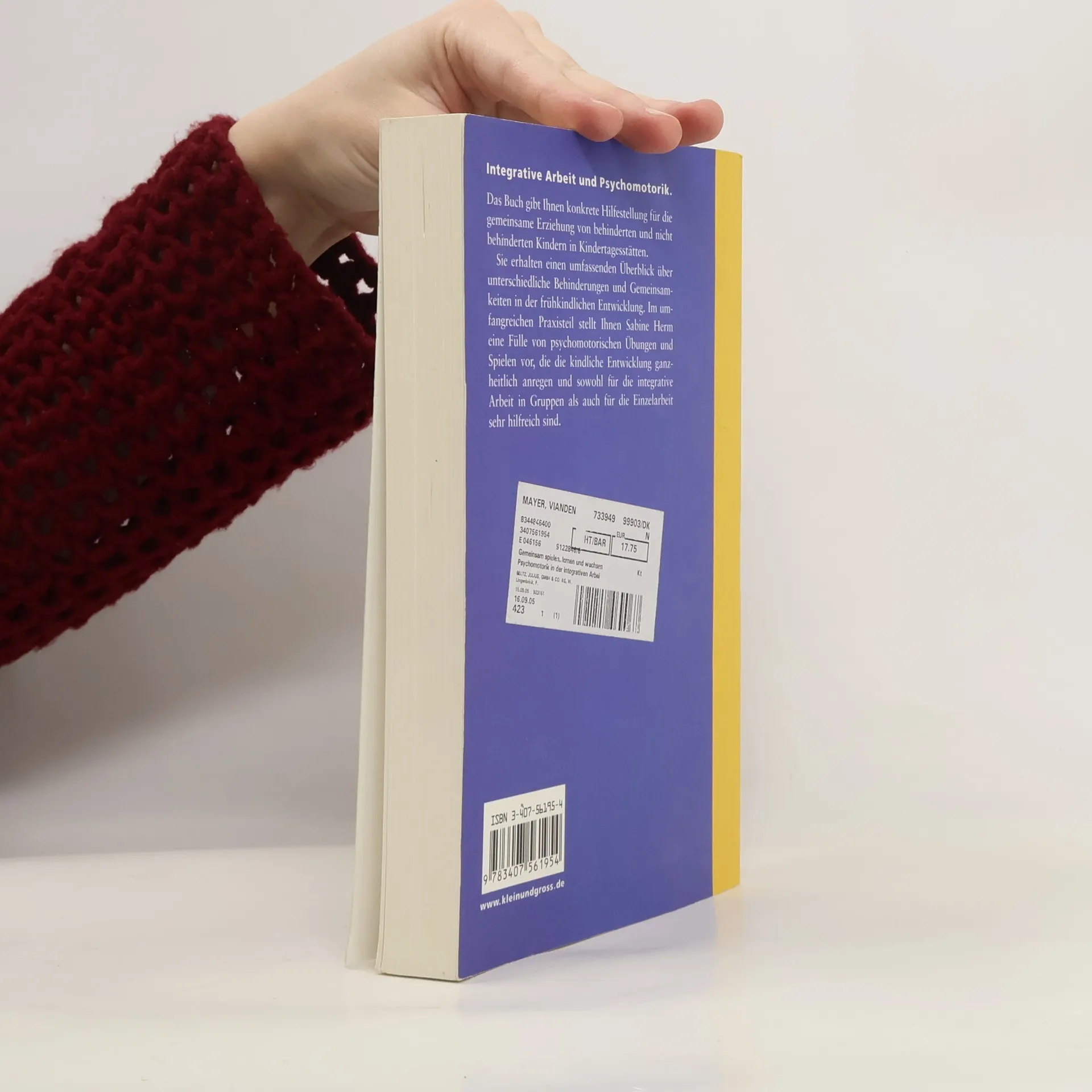 Informationen zum Titel: Behinderte und nicht-behinderte Kinder haben viele Gemeinsamkeiten, darunter auch die Freude an der Bewegung. Sabine Herm nennt die verschiedenen Formen von Behinderungen und zeigt Gemeinsamkeiten in der frühkindlichen Entwicklung. Im Mittelpunkt stehen praxiserprobte psychomotorische Übungen, die die kindliche Entwicklung ganzheitlich anregen und die Stärken der Kinder wahrnehmen und fördern. Neu in dieser Auflage: ein Kapitel zum frühkindlichen Autismus, ADHS und zu anderen Behinderungsformen.