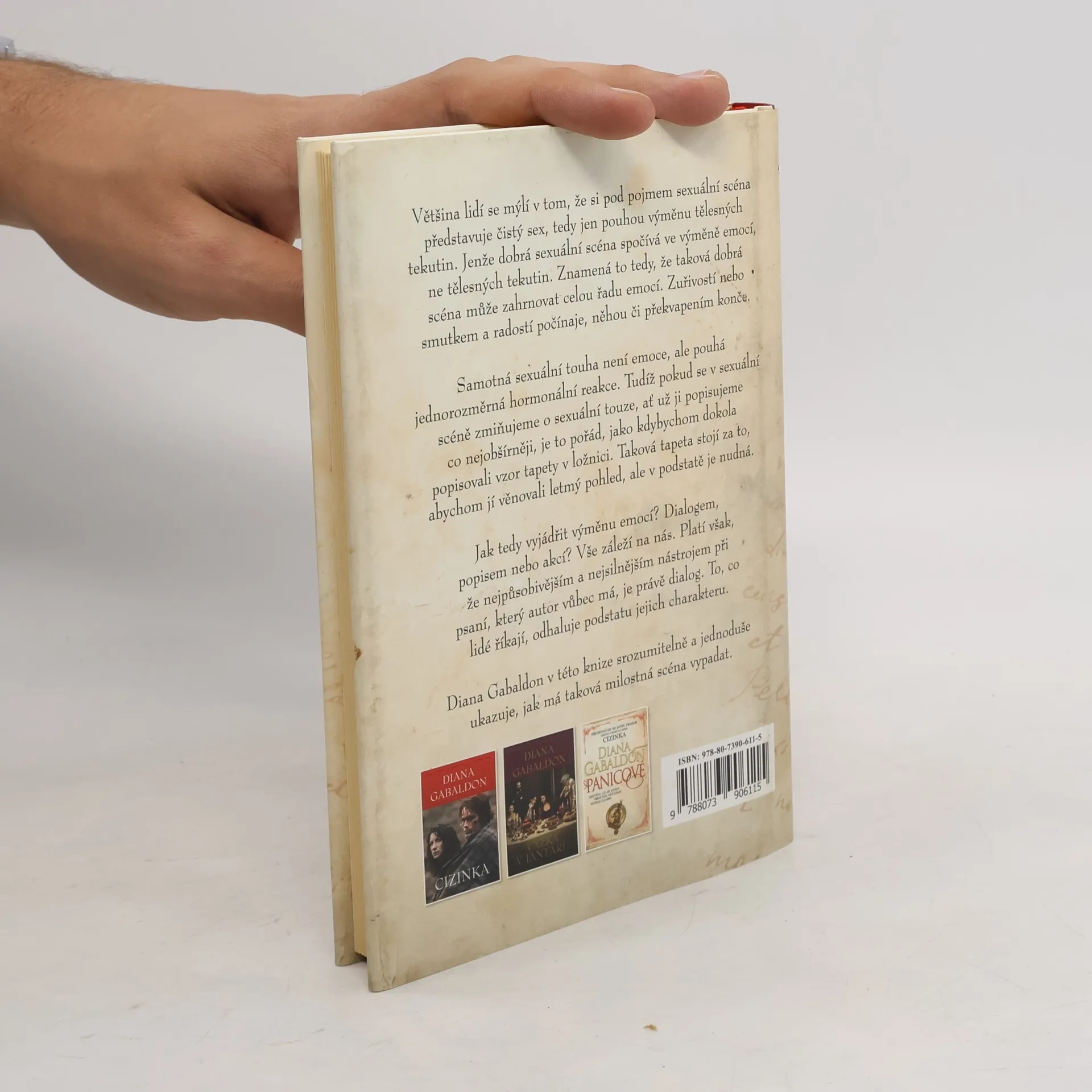 V tomto výtahu uznávaná spisovatelka Diana Gabaldon nabízí své neocenitelné zkušenosti se psaním milostných scén s použitím síly emocí. Poznáte rozdíl mezi sexem bez příčiny a milostnými scénami, které jsou důležité pro děj a posunují příběh kupředu a jak zacházet s pikantními akty, které však nejsou bezúčelné, ale slouží příběhu. Gabaldon také poznamenává, že sex může být popsán originálně. Ale musí se zapojit smysly, používat originální věty a ne se uchylovat k otřepaným frázím. Vše demonstruje na příkladech ze své série Cizinka.