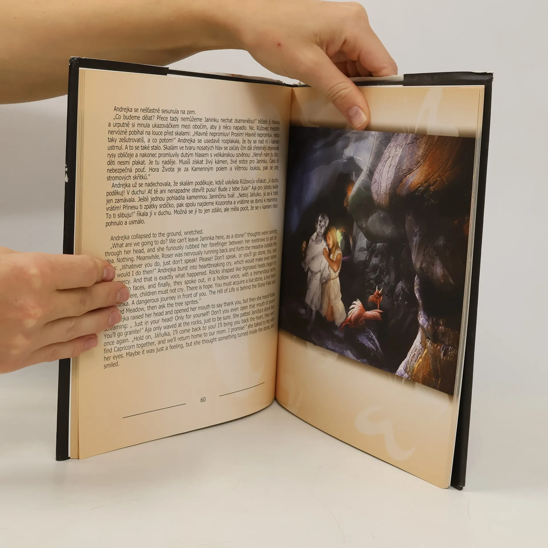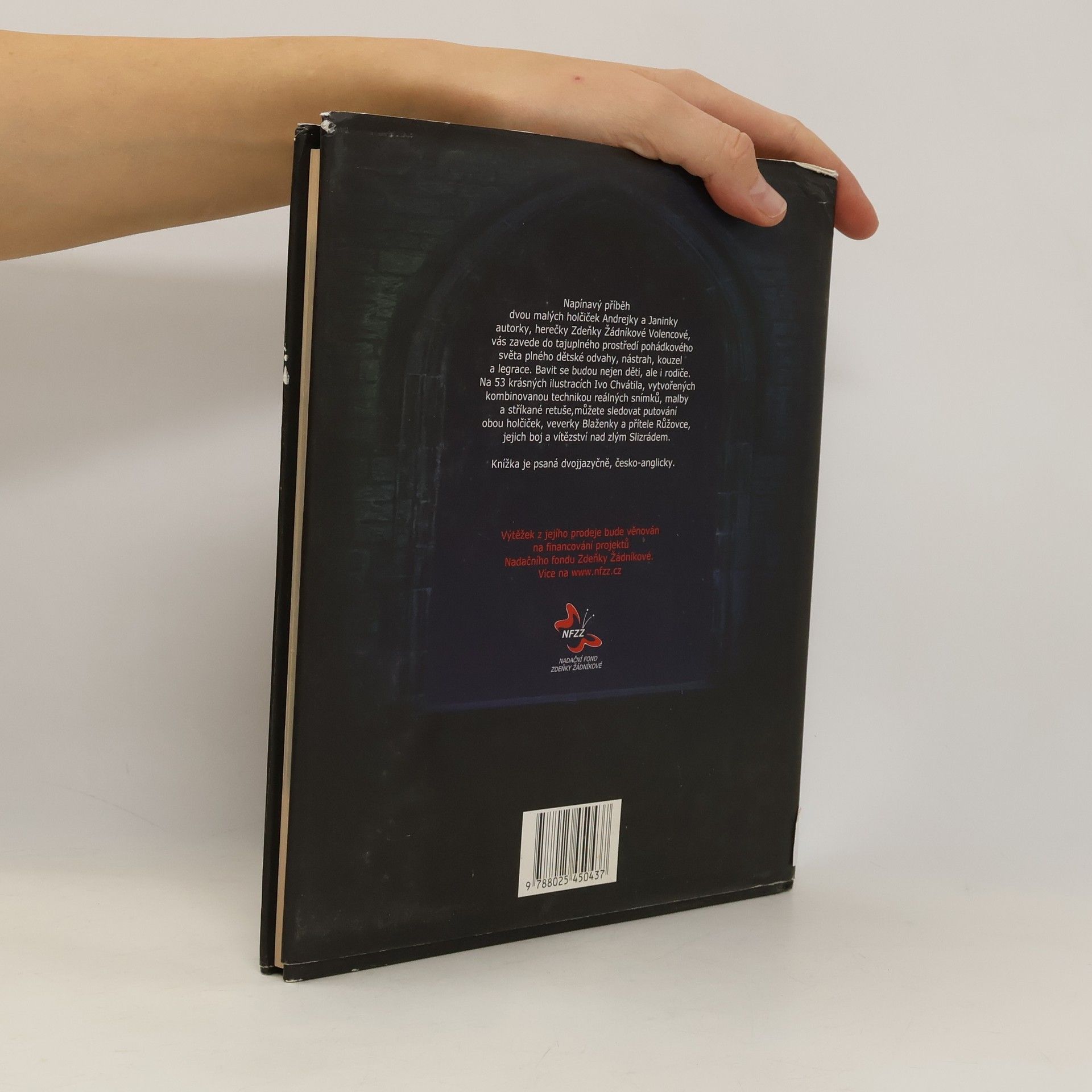 Napínavý příběh dvou malých holčiček Andrejky a Janinky autorky herečky Zdeňky Žádníkové vás zavede do tajuplného prostředí pohádkového světa plného dětské odvahy, nástrah, kouzel a legrace. Bavit se budou nejen děti, ale i rodiče. Na 52 krásných ilustracích Ivo Chvátila, vytvořených kombinovanou technikou reálných snímků, malby a stříkané retuše můžete sledovat putování obou holčiček, veverky Blaženky a přítele Růžovce, jejich boj a vítězství nad zlým Slizrádem. Knížka je psaná dvojjazyčně, česko-anglicky.