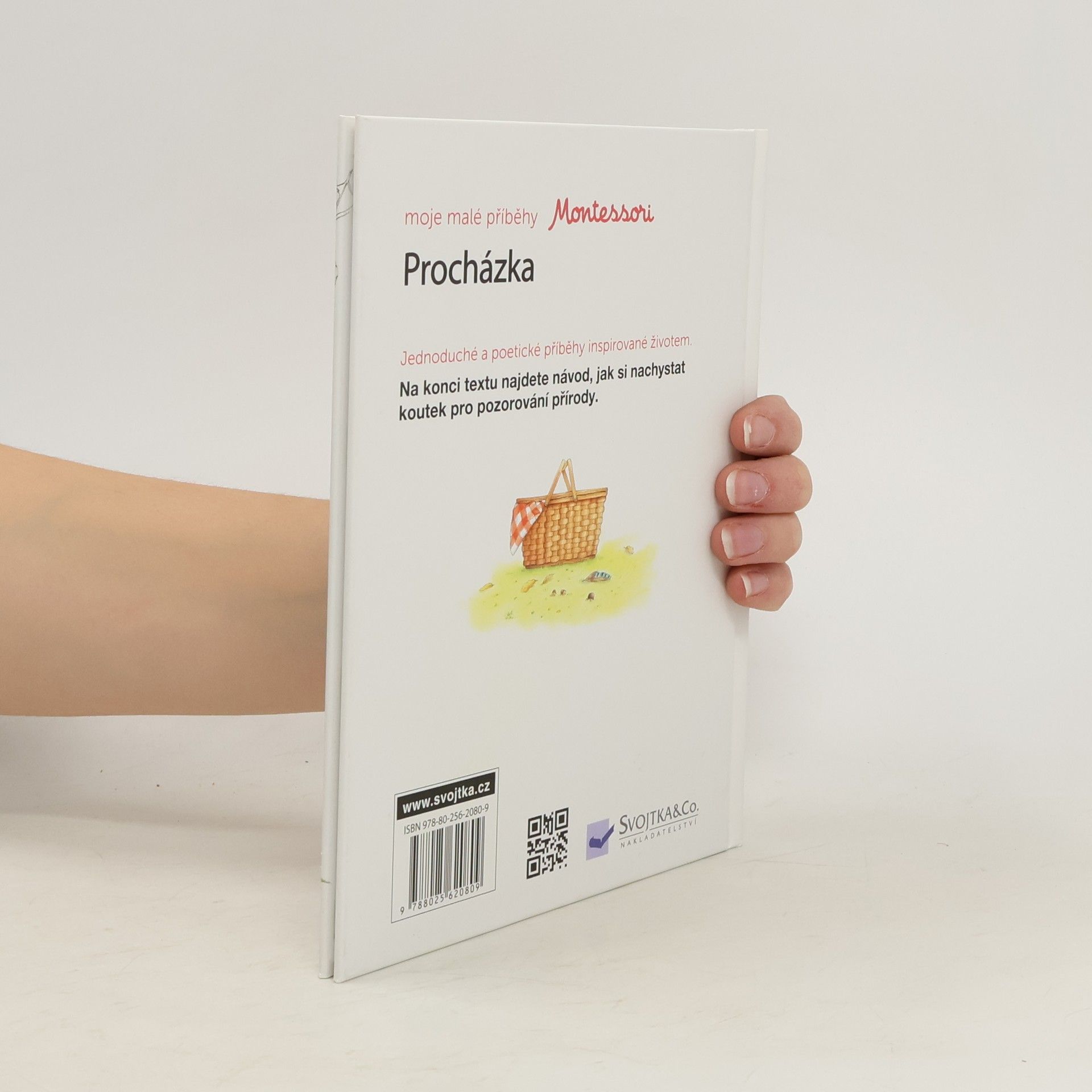 Krátký, jednoduchý příběh s poetickými ilustracemi je inspirovaný každodenním životem a situacemi, s nimiž se dítě běžně setkává. V tomto díle se Ema s Lindou a svými rodiči vypraví na procházku do blízkého lesíka. Prohlížejte si, čtěte a povídejte si s dětmi o tom, co holčičky vidí okolo sebe – zvířata, rostliny. Co dobrého si dají na závěrečném pikniku? Nakonec se s dětmi vypravte na podobnou procházku. Inspirovat se můžete i činností, kterou na konci příběhu najdete, a běžnou procházku proměnit v objevitelskou výpravu. Jednoduchý a konkrétní příběh je v souladu s pedagogikou Montessori, díky níž děti poznávají okolní svět i samy sebe, získávají sebedůvěru i schopnost pozorovat a vnímat své okolí. Knížka s prvky Montessori.