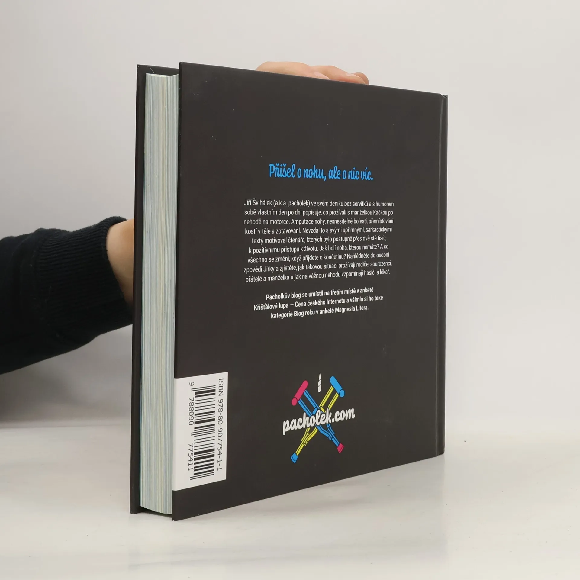 Jiří Švihálek (a.k.a. pacholek) ve svém deníku bez servítků a s humorem sobě vlastním den po dni popisuje, co prožívali s manželkou Kačkou po nehodě na motorce. Amputace nohy, nesnesitelné bolesti, přemísťování kostí v těle a zotavování. Nevzdal to a svými upřímnými, sarkastickými texty motivoval čtenáře, kterých bylo postupně přes dvě stě tisíc, k pozitivnímu přístupu k životu. Jak bolí noha, kterou nemáte? A co všechno se změní, když přijdete o končetinu? Nahlédněte do osobní zpovědi Jirky a zjistěte, jak takovou situaci prožívají rodiče, sourozenci, přátelé a manželka a jak na vážnou nehodu vzpomínají hasiči a lékař. Pacholkův blog se umístil na třetím místě v anketě Křišťálová lupa – Cena českého Internetu a všimla si ho také kategorie Blog roku v anketě Magnesia Litera.