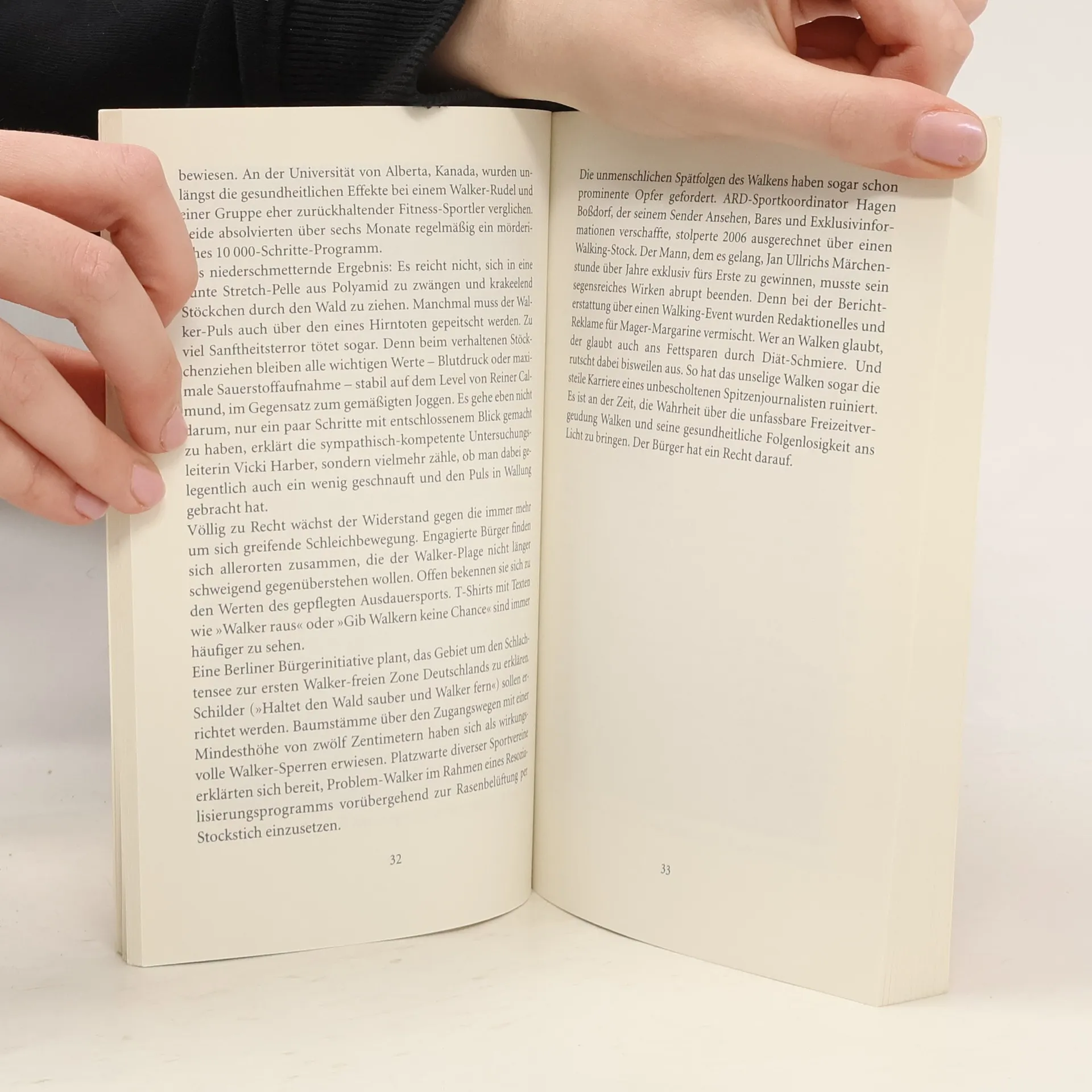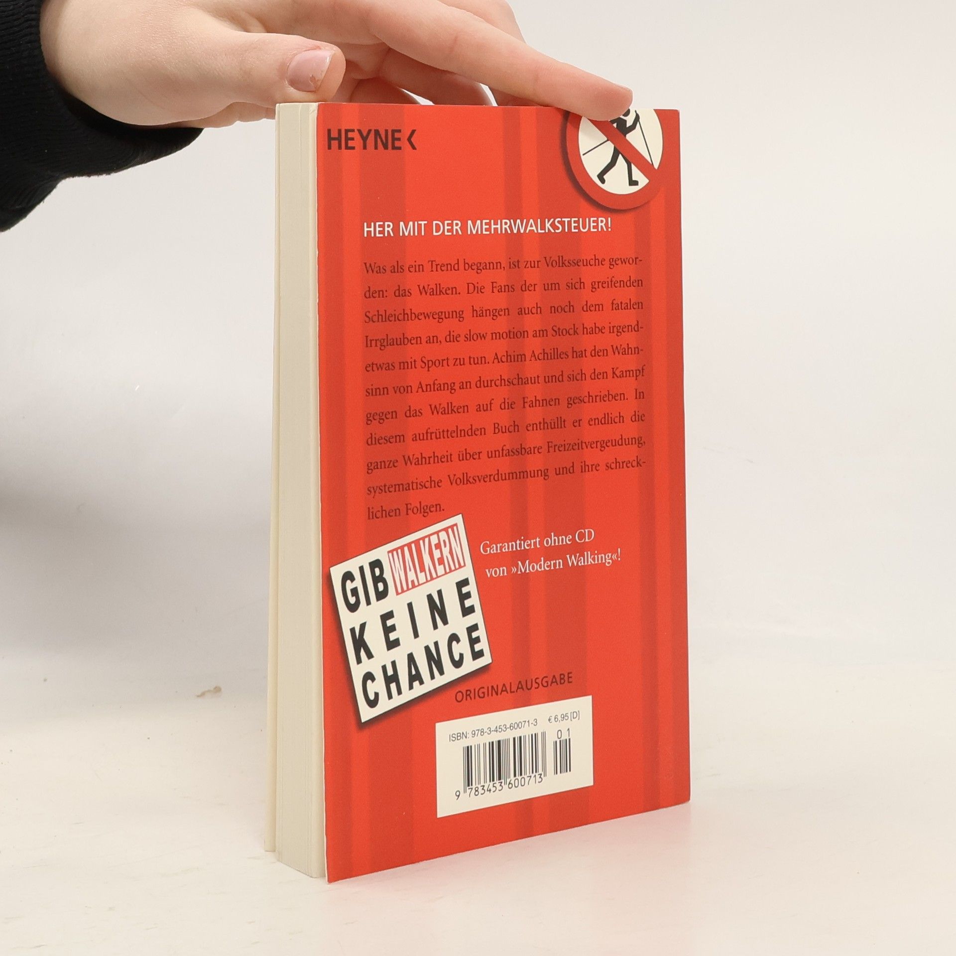 Her mit der Mehrwalksteuer! Was als einer von vielen Trends begann, ist zur Volksseuche geworden: das Walken. Die Fans der um sich greifenden Schleichbewegung hängen auch noch dem fatalen Irrglauben an, die slow motion am Stock habe irgendetwas mit Sport zu tun. Achim Achilles hat den Wahnsinn von Anfang an durchschaut und sich den Kampf gegen das Walken auf die Fahnen geschrieben. In diesem aufrüttelnden Buch enthüllt er endlich die ganze Wahrheit über unfassbare Freizeitvergeudung, systematische Volksverdummung und ihre schrecklichen Folgen.• Das witzigste Buch über das Walken! • Mit Achims besten Anti-Walker-Kolumnen, erschütternden Beichten süchtiger Leser (»Hilfe, ich bin ein Walker«) und den bizarrsten Walker-News aus aller Welt