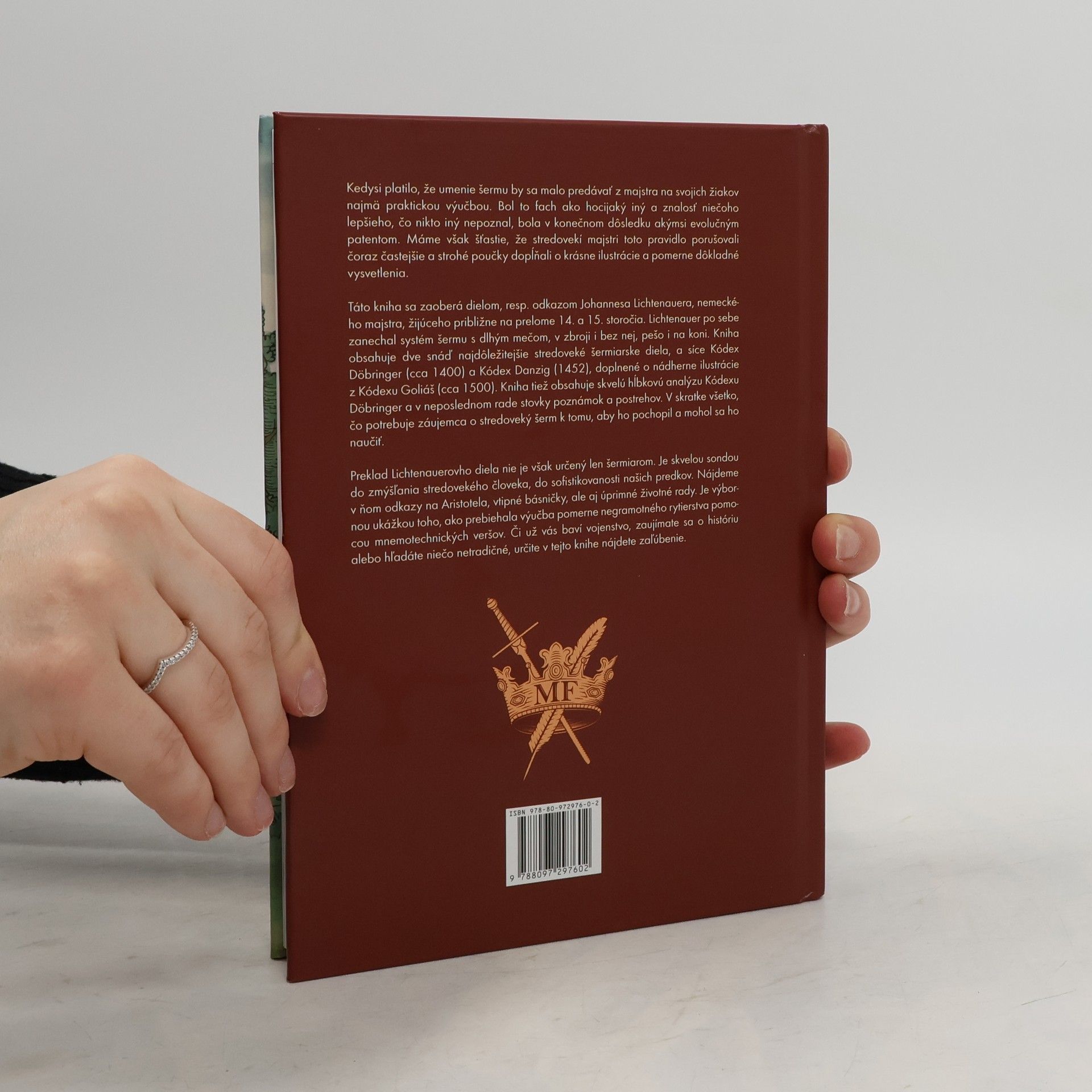 Umenie šermu sa kedysi odovzdávalo z majstra na žiakov najmä praktickou výučbou, pričom znalosti sa považovali za evolučný patent. Stredovekí majstri však často porušovali toto pravidlo a obohacovali svoje učenie o krásne ilustrácie a podrobné vysvetlenia. Tento text sa zameriava na odkaz Johannesa Lichtenauera, nemeckého majstra z prelomu 14. a 15. storočia, ktorý vytvoril systém šermu s dlhým mečom, v zbroji i bez nej, pešo aj na koni. Obsahuje dve významné stredoveké diela, Kódex Döbringer (cca 1400) a Kódex Danzig (1452), doplnené o ilustrácie z Kódexu Goliáš (cca 1500). Kniha ponúka hĺbkovú analýzu Kódexu Döbringer a stovky poznámok, ktoré sú neoceniteľné pre každého, kto sa chce naučiť stredoveký šerm. Preklad Lichtenauerovho diela nie je určený len šermiarom, ale aj tým, ktorí sa zaujímajú o stredoveké myslenie a sofistikovanosť predkov. Obsahuje odkazy na Aristotela, vtipné básničky a životné rady, ukazujúc, ako prebiehala výučba rytierstva pomocou mnemotechnických veršov. Či už vás zaujíma vojenstvo, história alebo hľadáte niečo netradičné, táto kniha vás určite osloví.