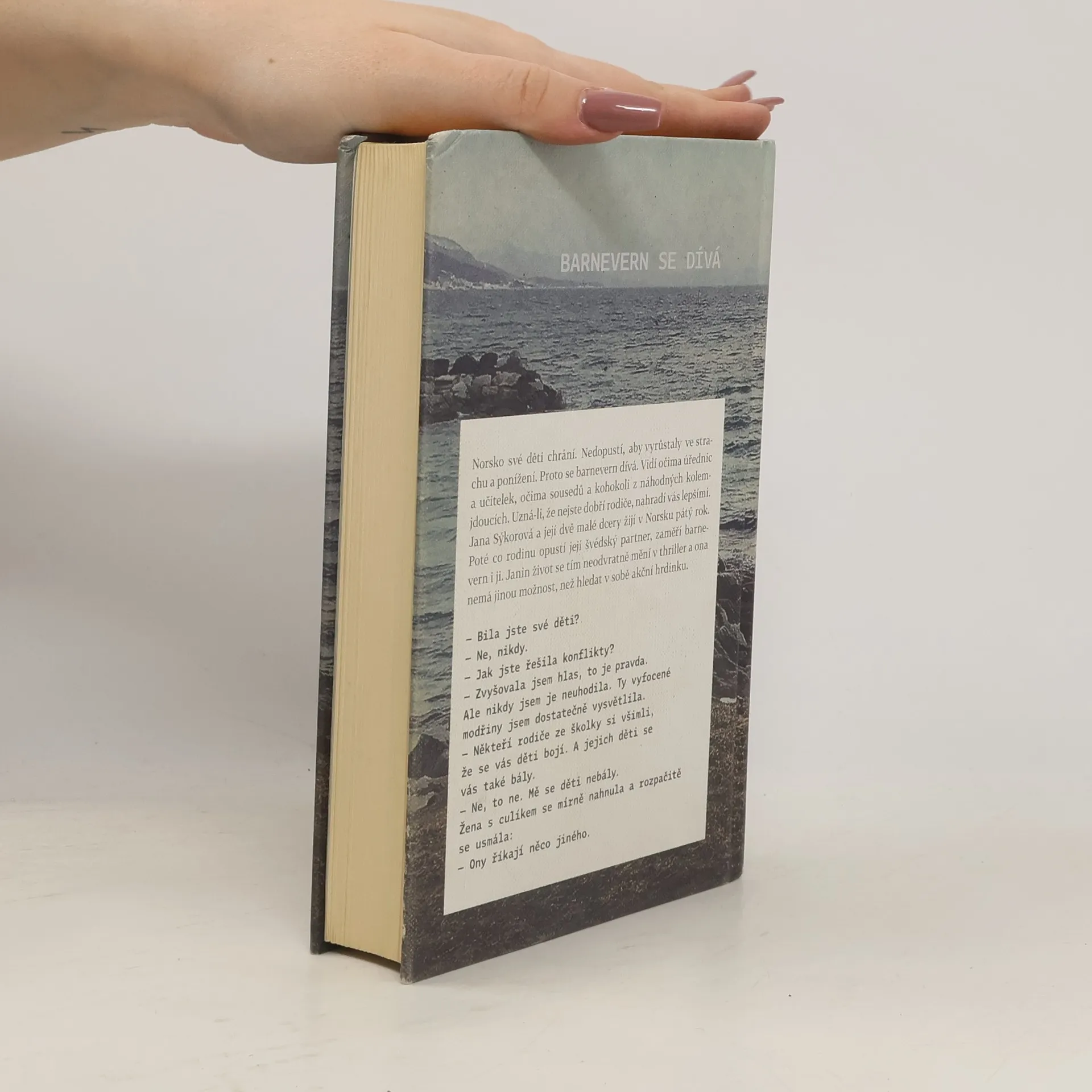 Norsko své děti chrání. Nedopustí, aby vyrůstaly ve strachu a ponížení. Proto se barnevern dívá. Vidí očima úřednic a učitelek, očima sousedů a kohokoli z náhodných kolemjdoucích. Uzná-li, že nejste dobří rodiče, nahradí vás lepšími. Jana Sýkorová a její dvě malé dcery žijí v Norsku pátý rok. Poté co rodinu opustí její švédský partner, zaměří barnevern i ji. Janin život se tím neodvratně mění v thriller a ona nemá jinou možnost, než hledat v sobě akční hrdinku. – Bila jste své děti? – Ne, nikdy. – Jak jste řešila konflikty? – Zvyšovala jsem hlas, to je pravda. Ale nikdy jsem je neuhodila. Ty vyfocené modřiny jsem dostatečně vysvětlila. – Někteří rodiče ze školky si všimli, že se vás děti bojí. A jejich děti se vás taky bály. – Ne, to ne. Mě se děti nebály. Žena s culíkem se mírně nahnula a rozpačitě se usmála: – Ony říkají něco jiného.