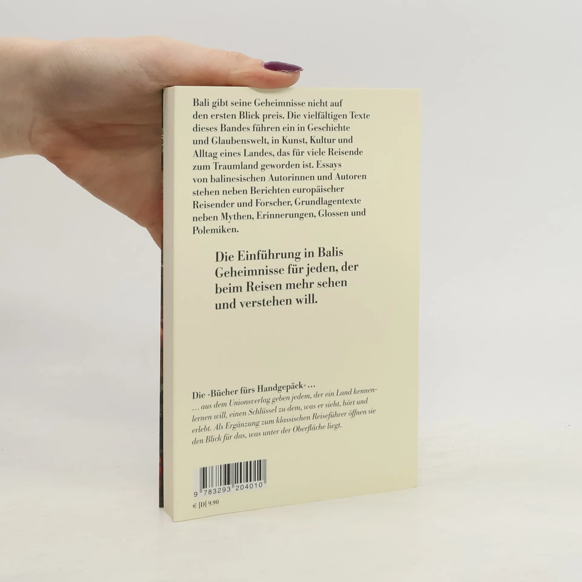 Bali gibt seine Geheimnisse nicht sofort preis. Die vielfältigen Texte dieses Bandes führen in die Geschichte, Glaubenswelt, Kunst, Kultur, Musik, Tanz, Handwerk und den Alltag eines Landes, das für viele Reisende zum Traumland geworden ist. Essays von balinesischen Autorinnen und Autoren stehen neben Berichten europäischer Reisender und Forscher, Grundlagentexte neben Mythen, Memoiren, Glossen und Polemiken. Diese Einführung öffnet den heutigen Reisenden die Augen und gibt ihm den Schlüssel zu seinen Erfahrungen. Nigel Barley hat viel vor, scheitert jedoch am Willen der Götter, während Clifford Geertz in seinem Dorf erst nach einer Blamage akzeptiert wird. Margaret Mead stößt bei ihrem Vorhaben, ein Haus zu bauen, auf geheime Gesetze. Jean Couteau versucht, seine Kenntnisse der balinesischen Sprache anzubieten, während Adrian Vickers den Ursprung des Mythos von der Paradiesinsel erforscht. Miguel Covarrubias beobachtet ein Dorforchester, Colin McPhee hört die Dämonen und bestellt einen Priester. Vicki Baum berichtet vom Kampf gegen holländische Truppen, und Urs Ramseyer begleitet die Balinesen bei ihren Riten. Regula Waldner erkennt andere Vorstellungen von Abfall und Reinheit, während Anna Mathews den Ausbruch des Heiligen Vulkans erlebt. Dies und vieles mehr über Bali.