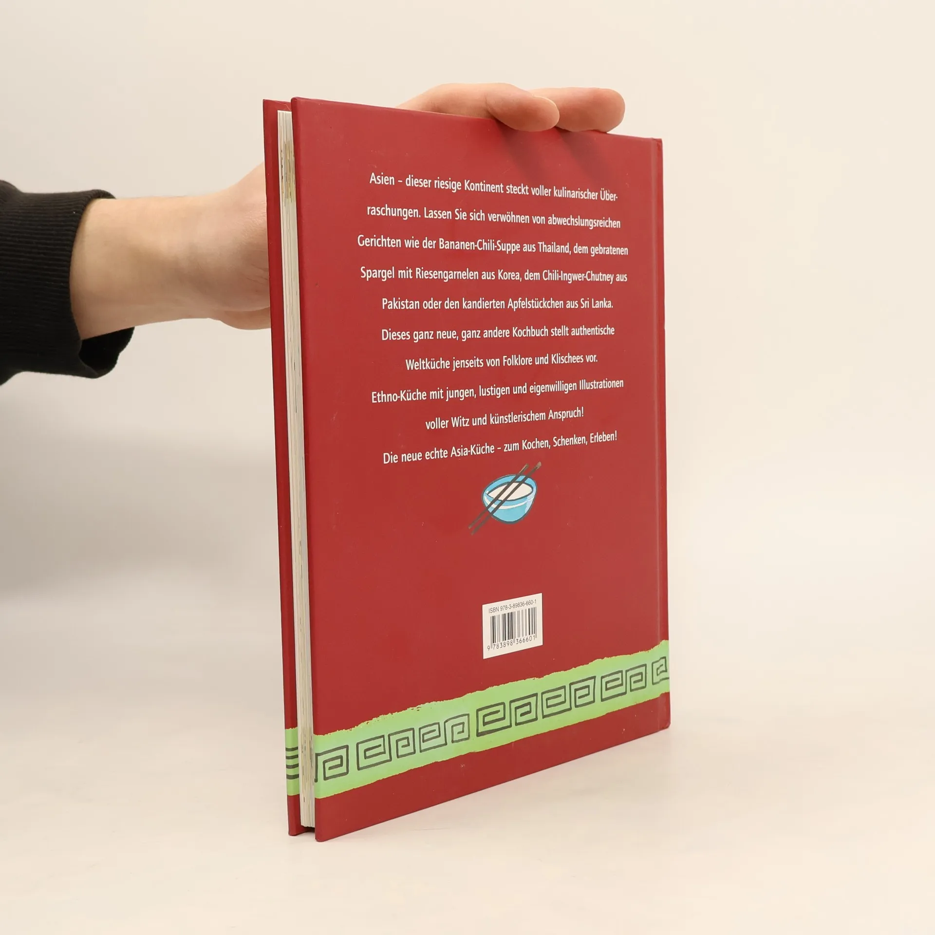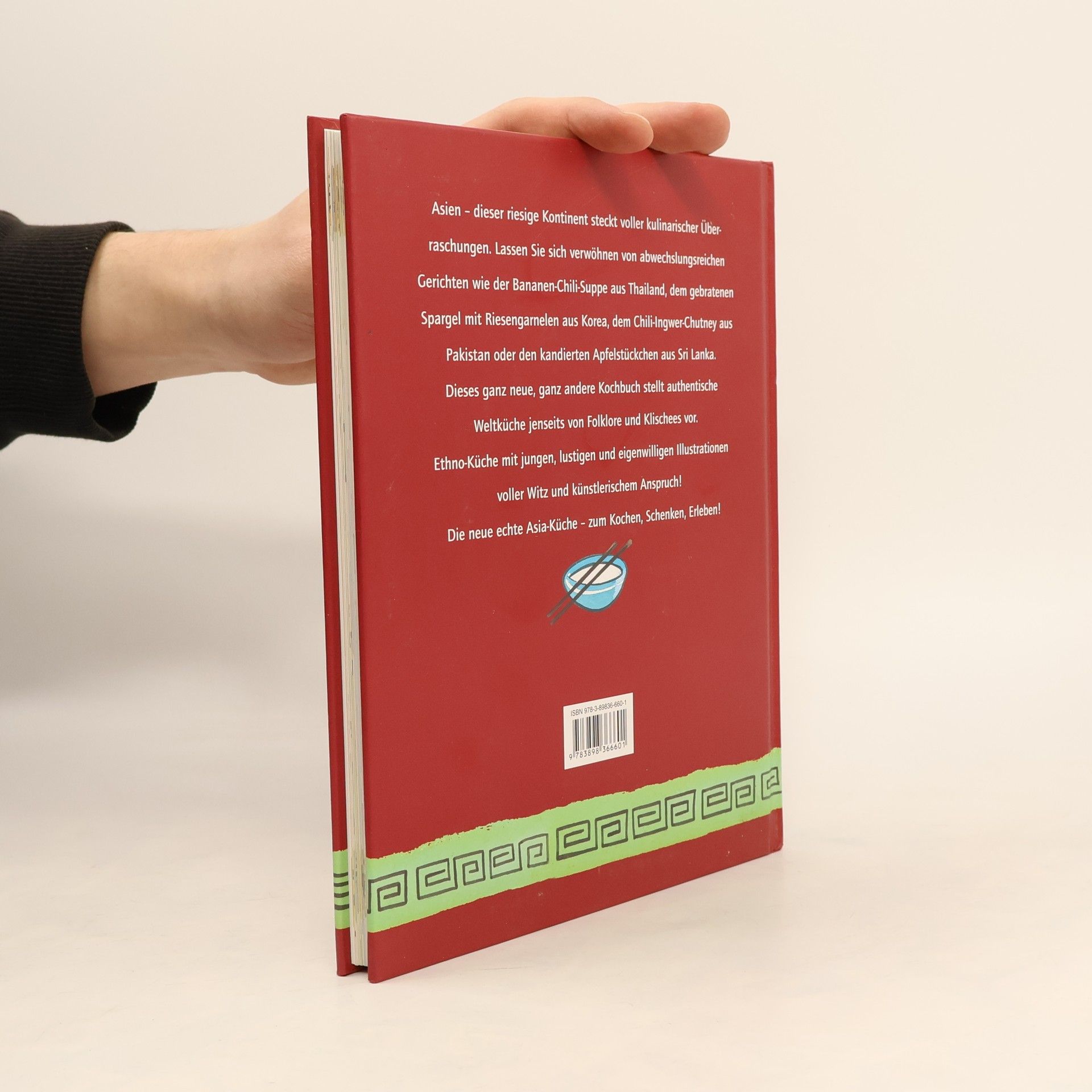 Ein ganz neues, ganz anderes Kochbuch - authentische Weltküche jenseits von Folklore und Klischees. Ethno-Küche mit jungen, lustigen und eigenwilligen Illustrationen. Asien - der riesige Kontinent voller kulinarischer Überraschungen, wie der Bananen-Chili-Suppe aus Thailand, dem gebratenen Spargel mit Riesengarnelen aus Korea, dem Chili-Ingwer-Chutney aus Pakistan oder den kandierten Apfelstückchen aus Sri Lanka. Die neue echte Asia-Küche - zum Kochen, Schenken, Erleben.
