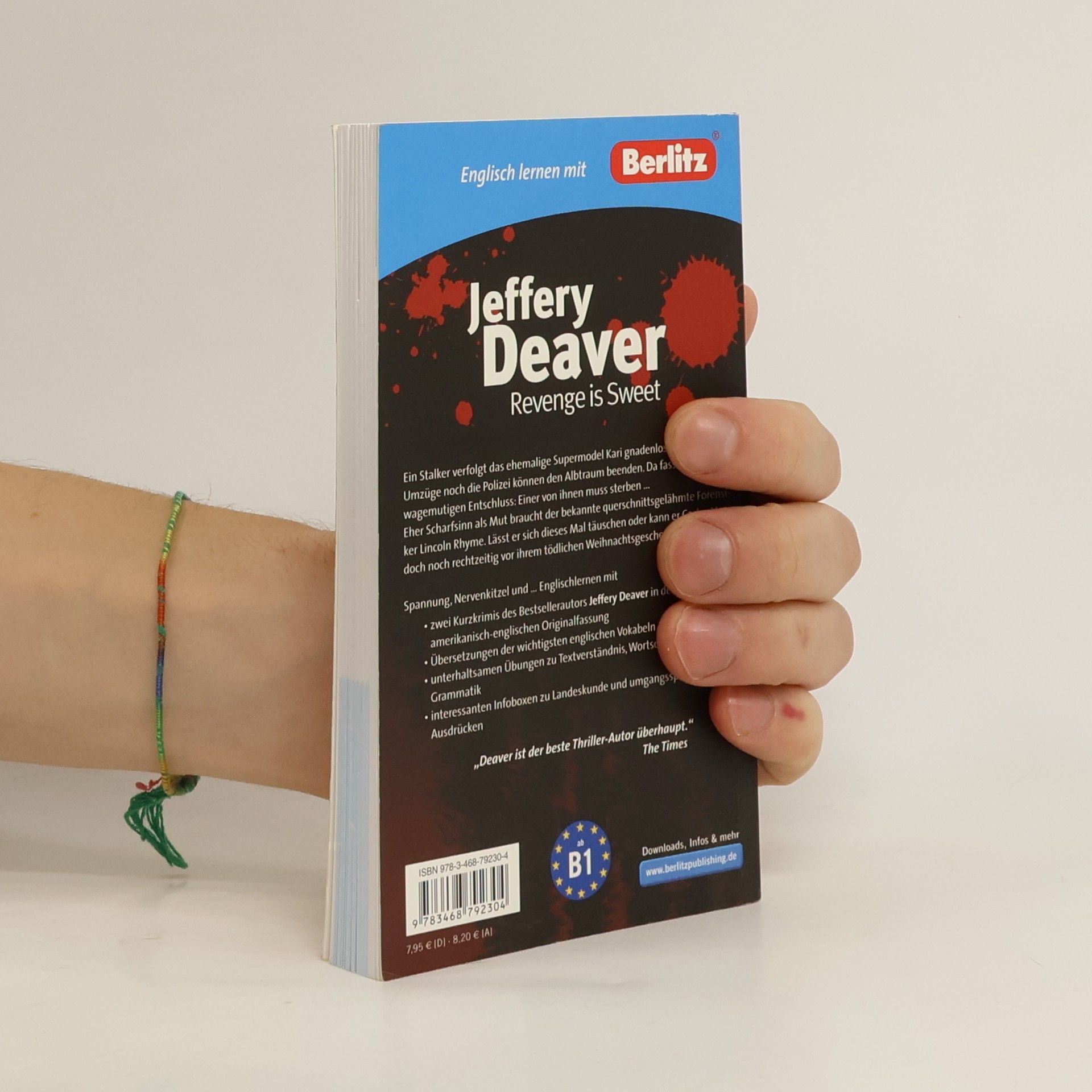 Ein Stalker verfolgt das frühere Supermodel Kari gnadenlos. Da fasst sie einen wagemutigen Entschluss. Eher Scharfsinn als Mut braucht der Forensiker Lincoln Rhyme, um Susan vor einem tödlichen Geschenk zu bewahren. Zwei Krimis, die man garantiert nicht aus der Hand legen kann!"Revenge is Sweet" beinhaltet zwei spannende englische Originalkrimis des renommierten Autors Jeffery Deaver, die man garantiert nicht aus der Hand legen kann. Die ungekürzten Krimis in amerikanischem Englisch garantieren Lernen mit Nervenkitzel. Vokabelerklärungen auf jeder Seite erleichtern das Textverständnis. In die Geschichten sind Übungen zu Grammatik, Vokabeln und Inhalt eingestreut, die zusätzlich für unterhaltsamen Lernerfolg ganz nebenbei sorgen. Im Anhang befinden sich ein Wörterverzeichnis und die Lösungen zu allen Übungen. Für alle Fortgeschrittenen (Wissensstand Niveau B1 gemäß des Europäischen Sprachenzertifikats), die ihr Englisch auf spannende Weise verbessern wollen.