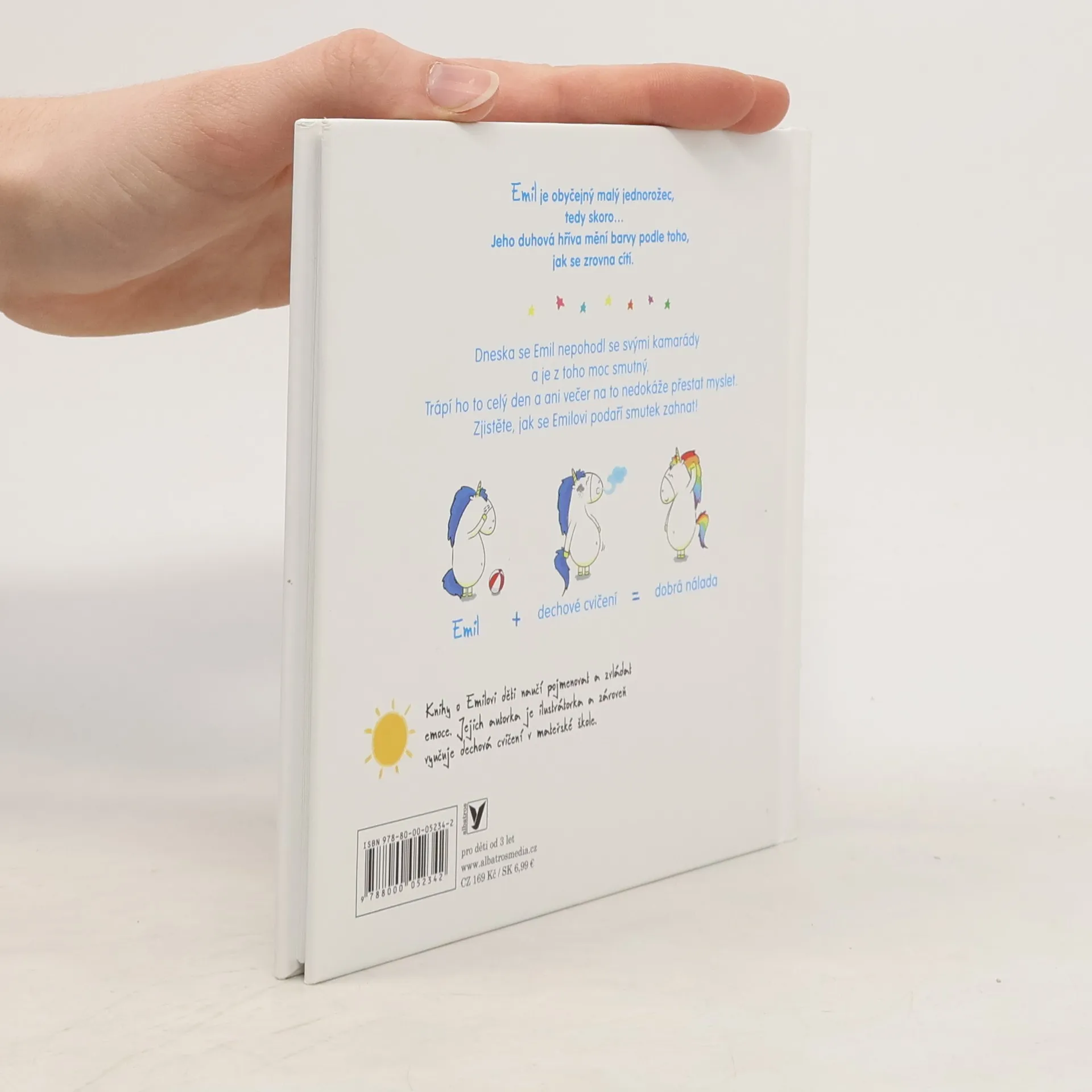 Emil je malý jednorožec jako každý jiný, tedy skoro… Jeho duhová hříva mění barvy podle toho, jak se zrovna cítí. Dneska se Emil nepohodl se svými kamarády a je z toho moc smutný. Trápí ho to celý den a ani večer na to nedokáže přestat myslet. Zjistěte, jak se Emilovi podaří smutek zahnat!