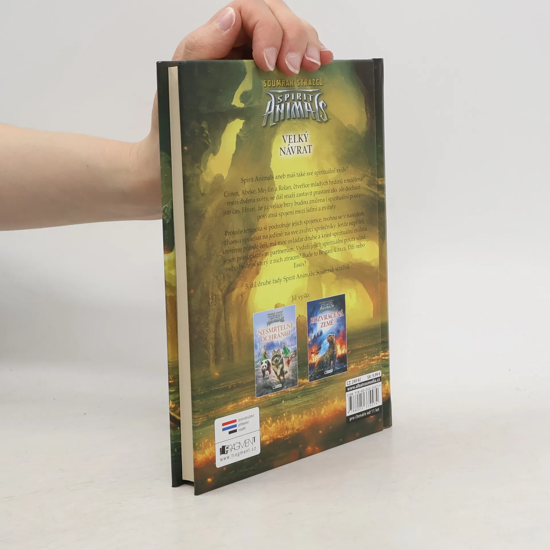 Spirit Animals aneb máš také své spirituální zvíře? Conor, Abeke, Mej-lin a Rolan, čtveřice mladých hrdinů rozdělená mezi dvěma světy, se dál snaží zastavit prastaré zlo, ale dochází jim čas. Hrozí, že již velice brzy budou zničena i spirituální pouta – posvátná spojení mezi lidmi a zvířaty. Protože temnota si podrobuje jejich spojence, mohou se v nastalém chaosu spoléhat na jediné: na své zvířecí společníky. Jenže nepřítel, kterému přátelé čelí, má moc ovládat druhé a krást spirituální zvířata jejich právoplatným partnerům. Vydrží jejich spirituální pouta silná, nebo bude některý z nich ztracen? Bude to Brigan, Uraza, Dží nebo Essix?