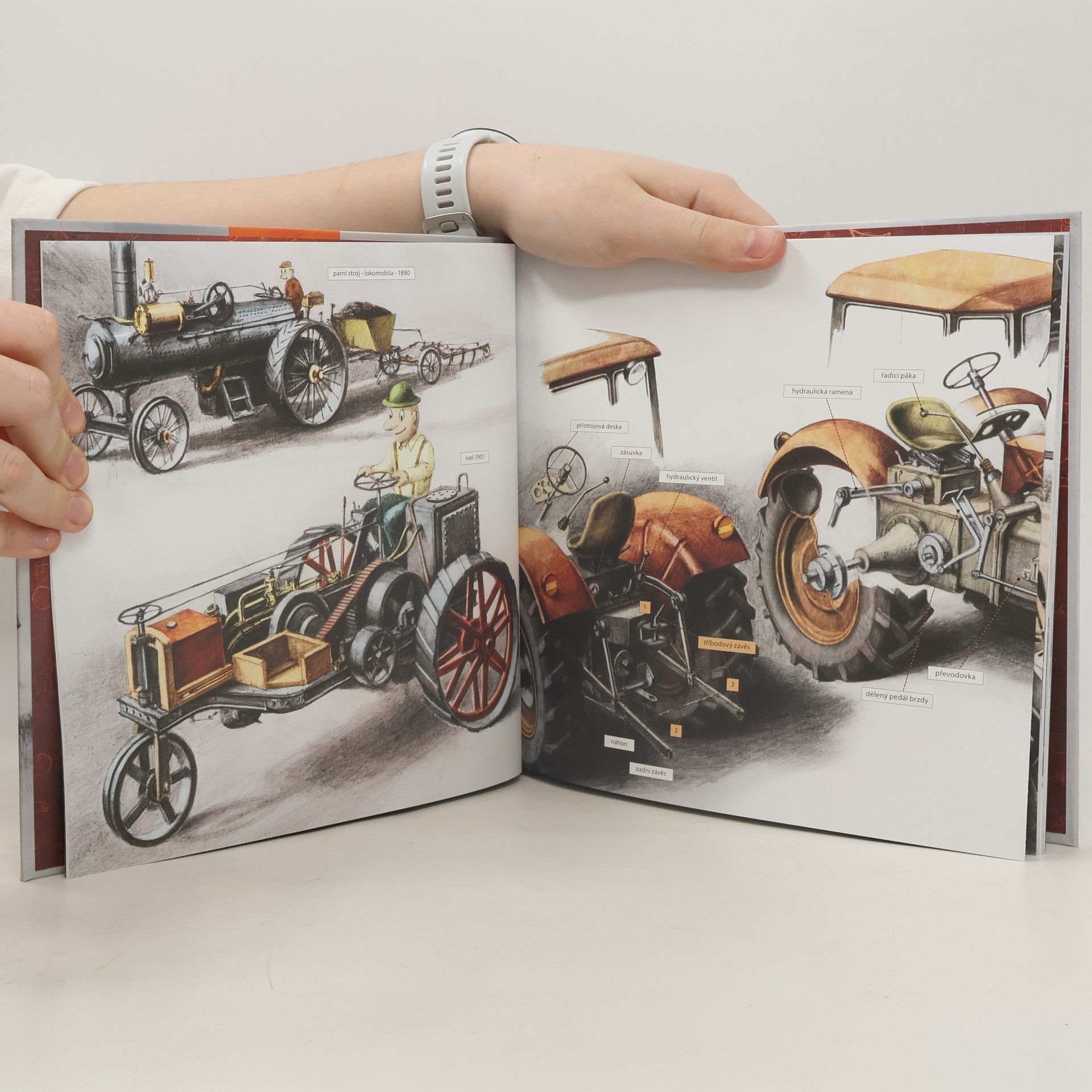 Chcete nahlédnout do kabiny i pod kapotu nejrůznějších typů traktorů? Tak nastartujte svoji zvědavost a pojďte zjistit, z jakých součástek se skládají a co všechno dokážou. Co se dá za takový traktor připojit a jak všestranným pomocníkem umí být? Čeká na vás spousta zajímavostí a detailních ilustrací, které vám představí tato úžasná vozidla a jejich široké využití na poli i v lese!
