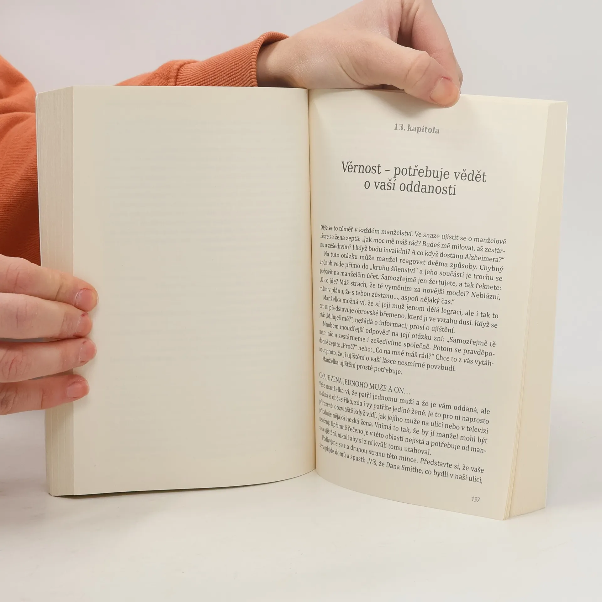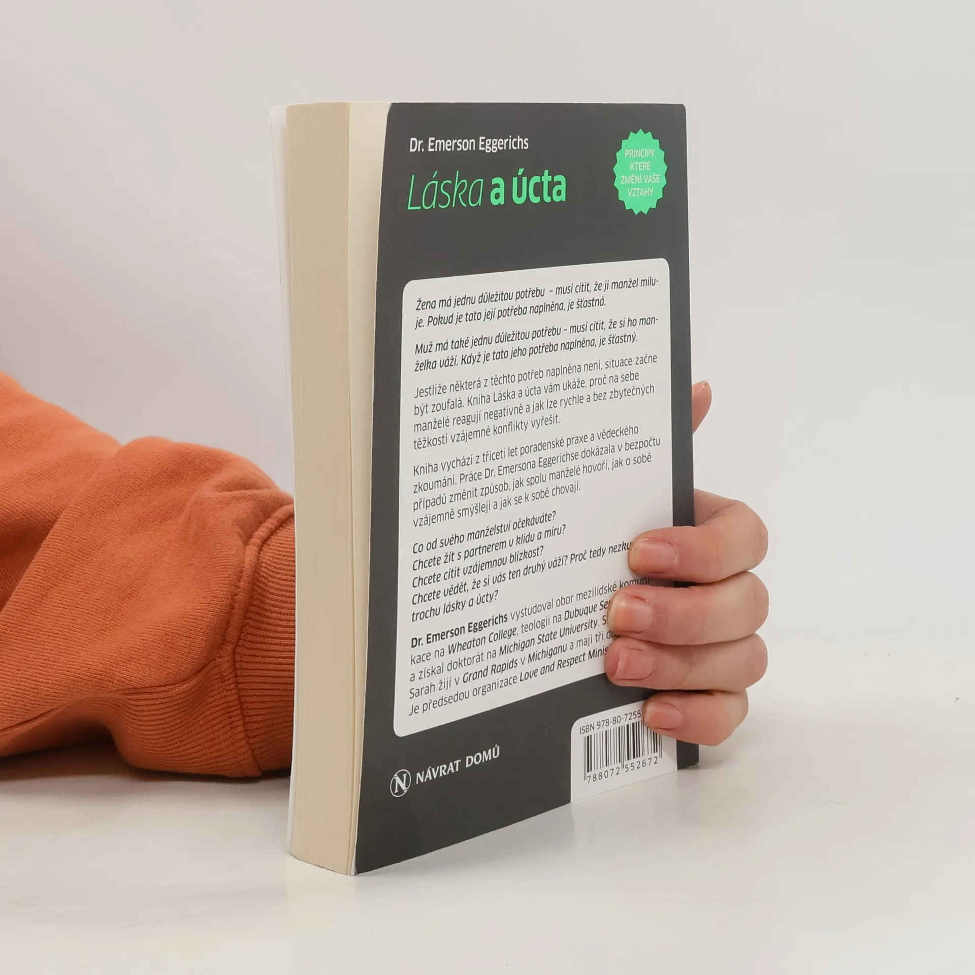 Láska, po níž ona tolik touží. Úcta, kterou on tak zoufale potřebuje. Žena má jednu důležitou potřebu - musí cítit, že ji manžel miluje. Pokud je tato její potřeba naplněna, je šťastná. Muž má také jednu důležitou potřebu - musí cítit, že si ho manželka váží. Když je tato jeho potřeba naplněna, je šťastný. Jestliže některá z těchto potřeb naplněna není, situace začne být zoufalá. Kniha Láska a úcta vám ukáže, proč na sebe manželé reagují negativně a jak lze rychle a bez zbytečných těžkostí vzájemné konflikty vyřešit. Kniha vychází z třiceti let poradenské praxe a vědeckého zkoumání.