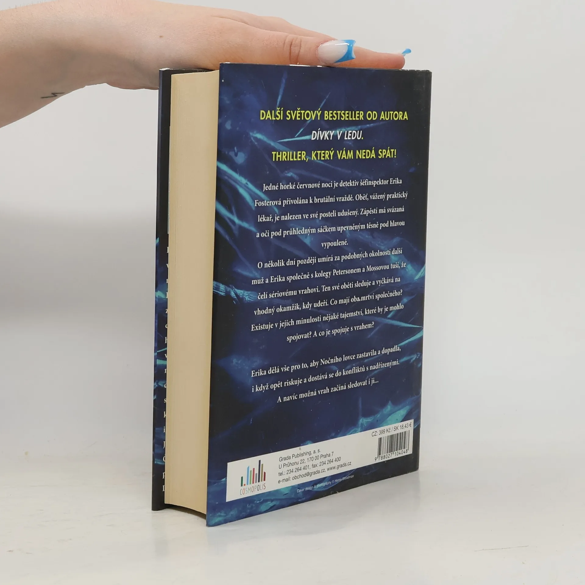 Jedné horké červnové noci je detektiv šéfinspektor Erika Fosterová přivolána k brutální vraždě. Oběť, vážený praktický lékař, je nalezen ve své posteli udušený. Zápěstí má svázaná a oči pod průhledným sáčkem upevněným těsně pod hlavou vypoulené. O několik dní později umírá za podobných okolností další muž a Erika společně s kolegy Petersonem a Mossovou tuší, že čelí sériovému vrahovi. Ten své oběti sleduje a vyčkává na vhodný okamžik, kdy udeří. Co mají oba mrtví společného? Existuje v jejich minulosti nějaké tajemství, které by je mohlo spojovat? A co je spojuje s vrahem? Erika dělá vše pro to, aby Nočního lovce zastavila a dopadla, i když opět riskuje a dostává se do konfliktů s nadřízenými. A navíc možná vrah začíná sledovat i ji...