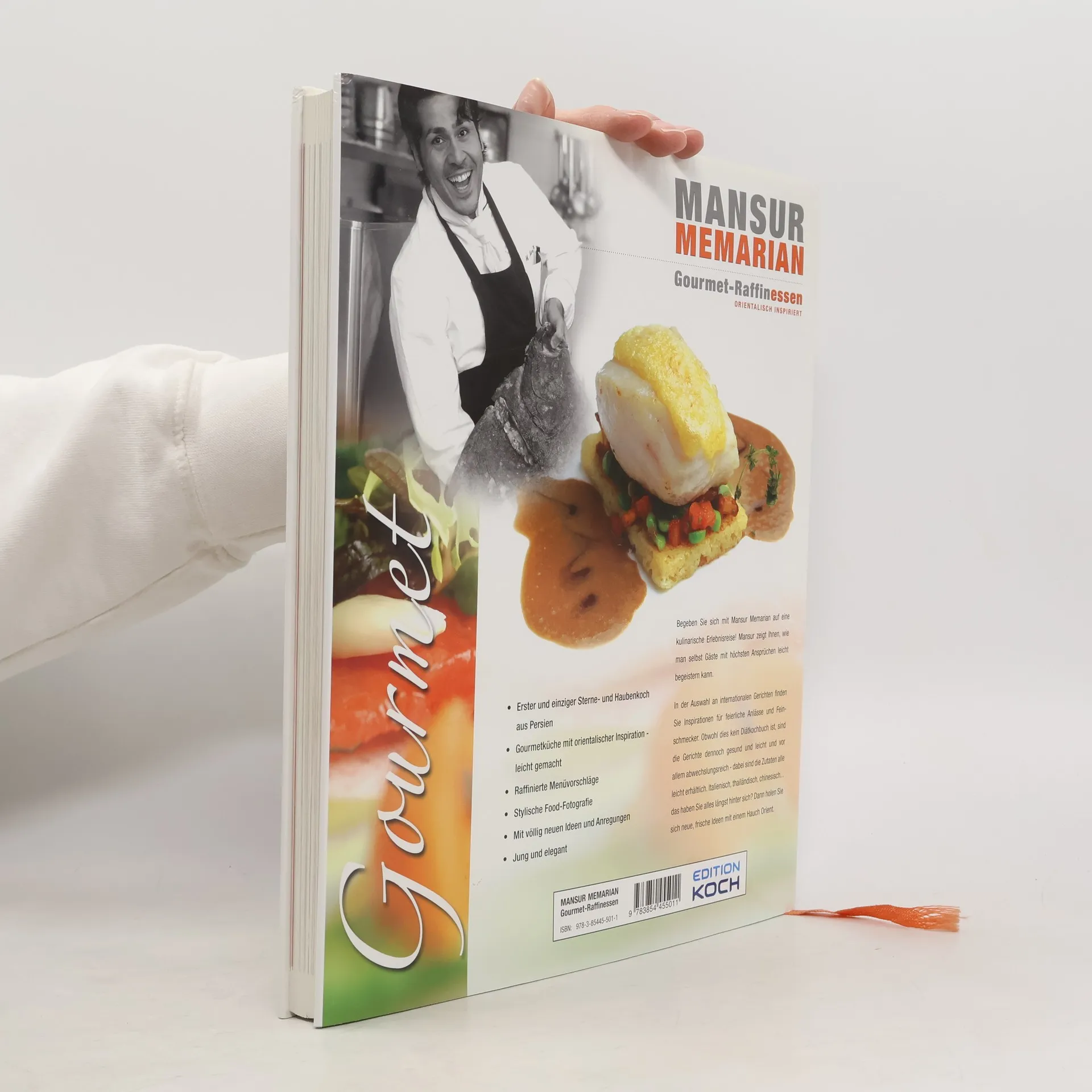 Begeben Sie sich mit Mansur Memarian auf eine kulinarische Erlebnisreise! Mansur zeigt Ihnen, wie man selbst Gäste mit höchsten Ansprüchen leicht begeistern kann. In der Auswahl an internationalen Gerichten finden Sie Inspirationen für feierliche Anlässe und Feinschmecker. Obwohl dies kein Diätkochbuch ist, sind die Gerichte dennoch gesund und leicht und vor allem abwechslungsreich - dabei sind die Zutaten alle leicht erhältlich. Italienisch, thailändisch, chinesisch. das haben Sie alles längst hinter sich? Dann holen Sie sich neue, frische Ideen mit einem Hauch Orient. Auszug aus den Rezepten: Hummer auf Sesam-Honigcracker und Madras-Curry-Emulsion Gebratene Jakobsmuschel im Bouillabaisse-Sud und Kartoffeltascherl Iberischer Schweinerücken auf Safran-Rucola-Risotto und Wildwassergarnele Steinbutt mit Krenkruste auf Pfifferlingspanaché und böhmischen Knödeln G´röstl von Flusskrebsen und Milchkalbsbries mit sautierten Morcheln Taube auf Polenta und Morcheln mit Chili-Nuss-Jus Stubenkücken auf Avocado-Minz-Couscous und Gurkenschaum Garten-Erbsensuppe mit Minz-Kardamom-Cracker und Saiblingskaviar. Erster und einziger Sterne- und Haubenkoch aus Persien Gourmetküche mit orientalischer Inspiration – leicht gemacht Raffinierte Menüvorschläge Stylische Food-Fotografie Mit völlig neuen Ideen und Anregungen Jung und elegant.
