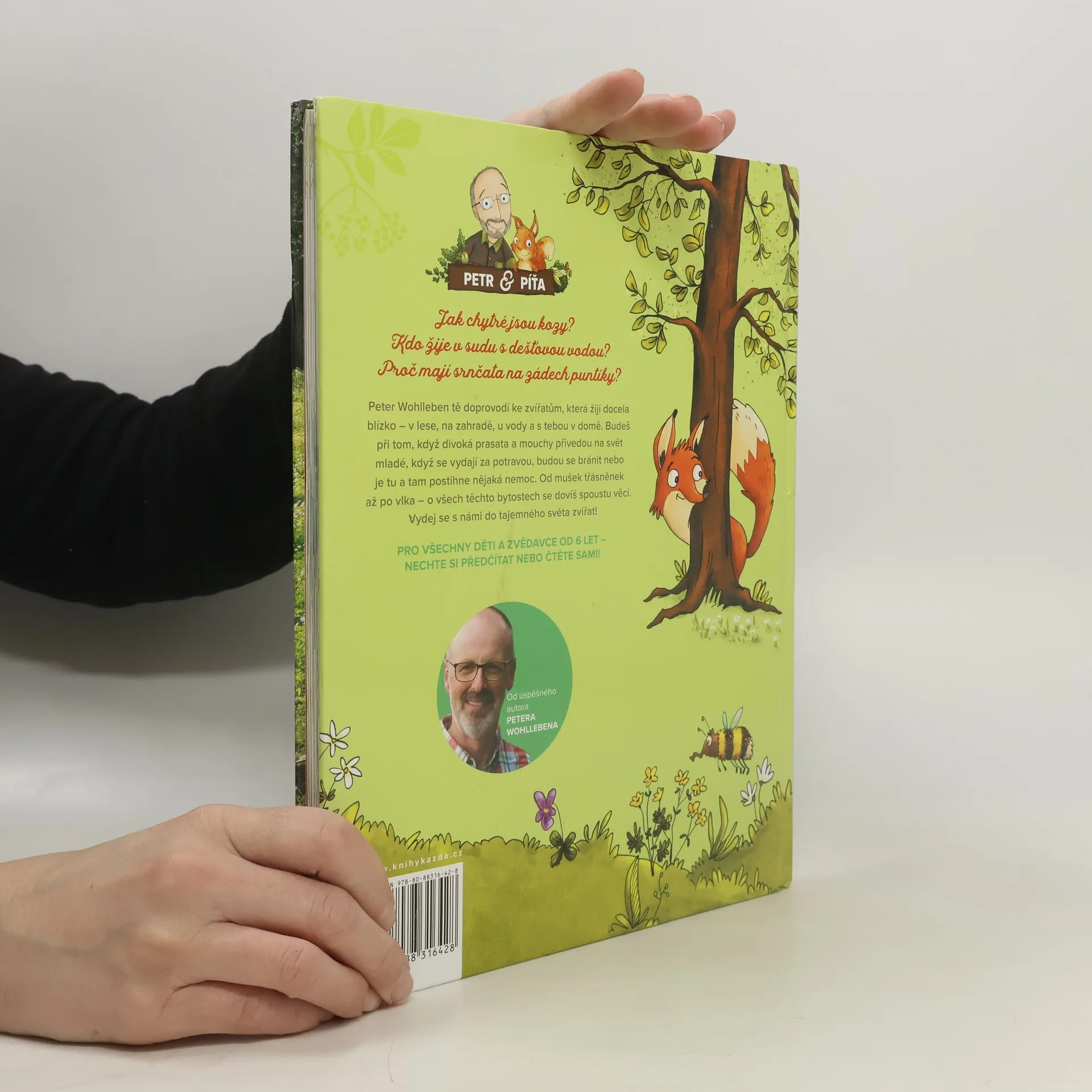 Ve své nejnovější knížce pro děti se Peter Wohlleben, autor řady úspěšných knih o lese, tentokrát věnuje zvířatům. Známý lesník doprovodí malé čtenáře ke zvířatům, která žijí docela blízko – v lese, na zahradě, u vody a s námi v domě. Budou při tom, když divoká prasata a mouchy přivedou na svět mladé, když se vydají za potravou, budou se bránit nebo je tu a tam postihne nějaká nemoc. Od mušek třásněnek až po vlka – o všech těchto bytostech se děti dozví spoustu zajímavých věcí. Vydejte se s námi do tajemného světa zvířat! Znáte odpovědi na tyto otázky? Jak chytré jsou kozy? Kdo žije v sudu s dešťovou vodou? Proč mají srnčata na zádech puntíky? Knížka je, stejně jako autorův bestseller Slyšíš, jak mluví stromy? doplněna nádhernými ilustracemi Stefanie Reich a fotografiemi Jense Steingässera. Knížka je určená dětem od šesti let, ale vzhledem ke krásným ilustracím a nenáročným textům si knížku oblíbí i mladší a příjemně překvapí i rodiče či prarodiče.
