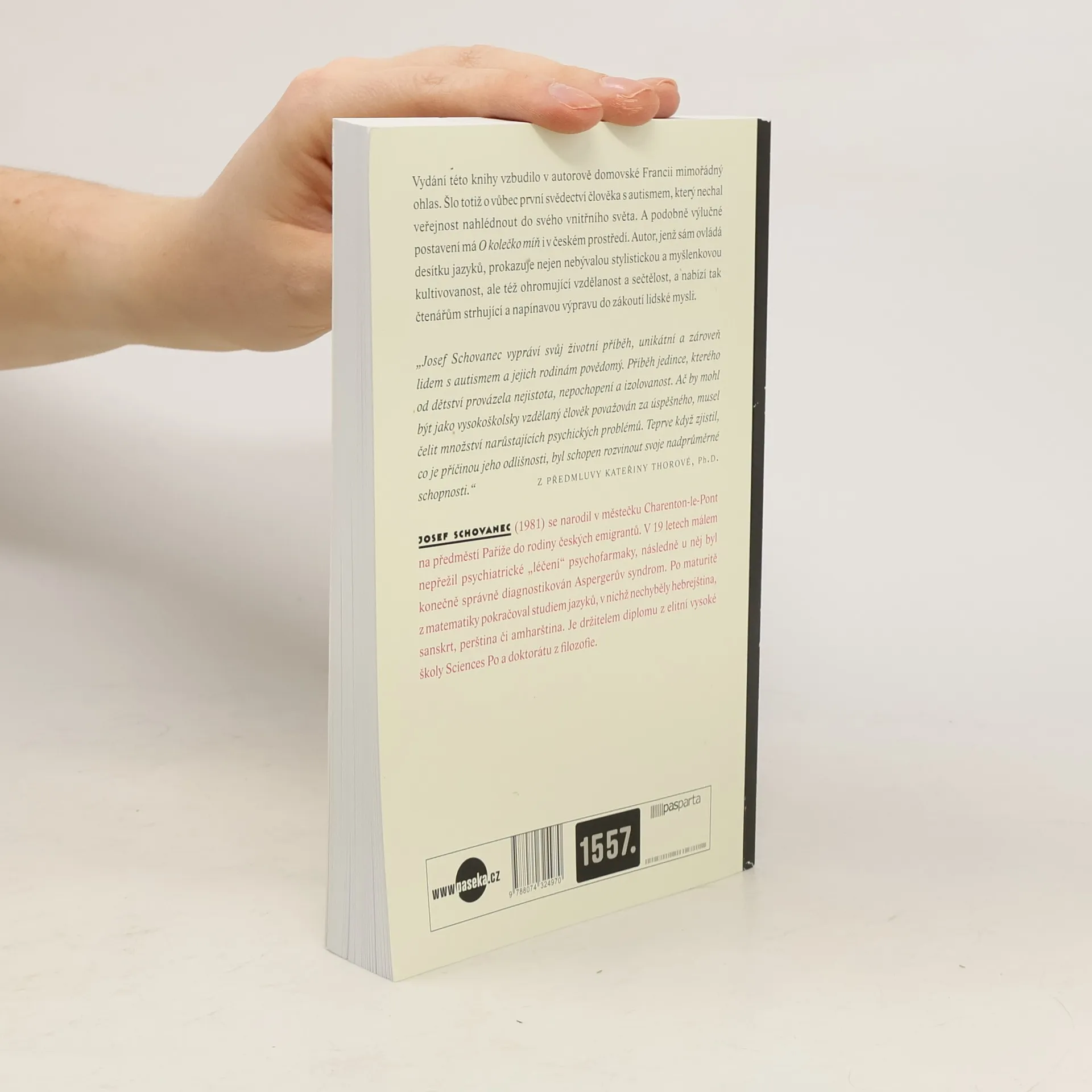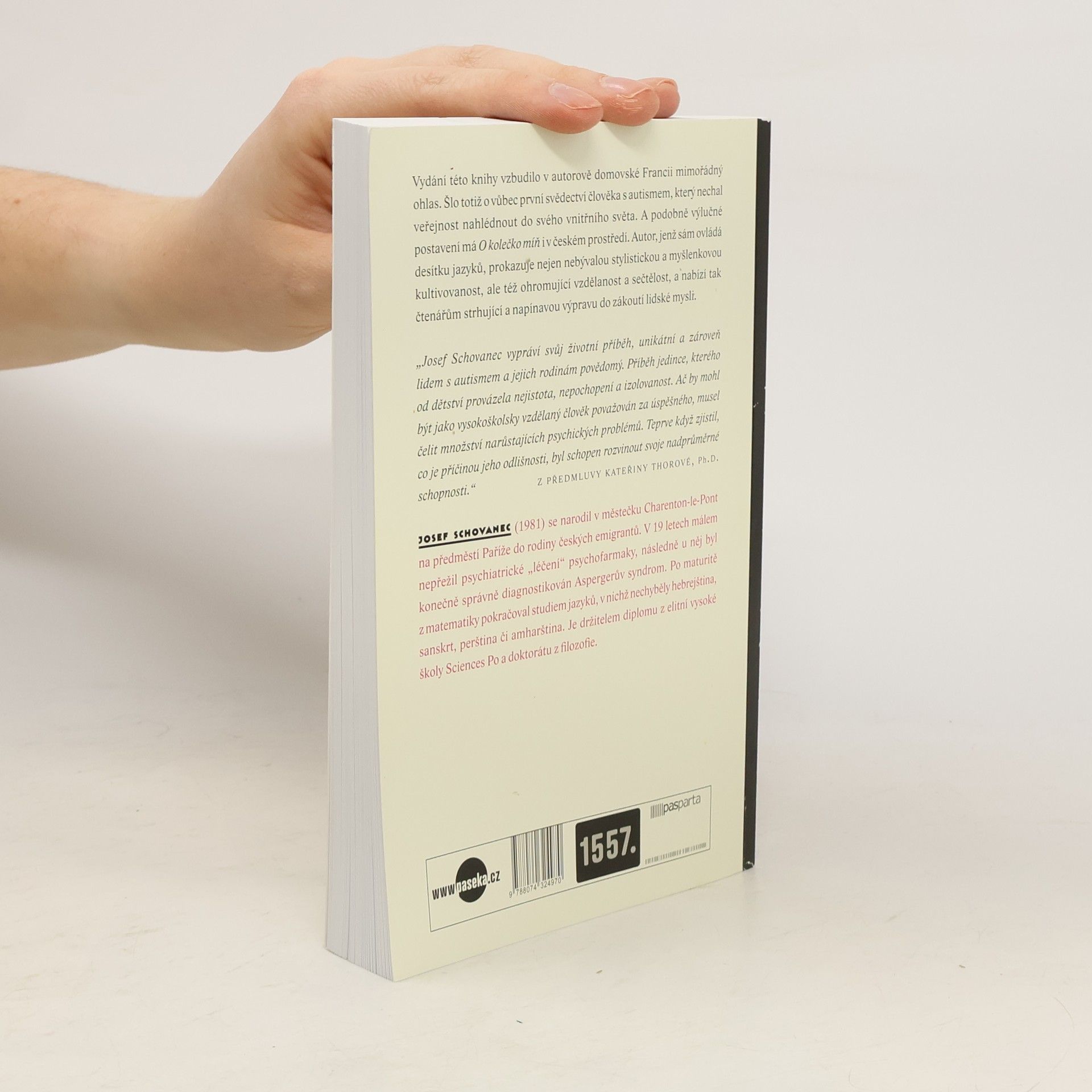 Schovancova kniha představuje autentický ponor do nitra člověka, který svůj handicap dokázal proměnit ve výhodu. Ve Francii vzbudilo jeho svědectví mimořádný ohlas – šlo o vůbec první vyprávění muže postiženého autismem, jenž nechal veřejnost nahlédnout do svého vnitřního světa. A podobné výlučné postavení má vydání knihy O kolečko míň i v českém prostředí. Autor, jenž sám ovládá deset jazyků, prokazuje nejen nebývalou stylistickou a myšlenkovou kultivovanost, ale též ohromující vzdělanost a sečtělost, a nabízí tak čtenářům strhující a napínavou výpravu do zákoutí lidské mysli.
