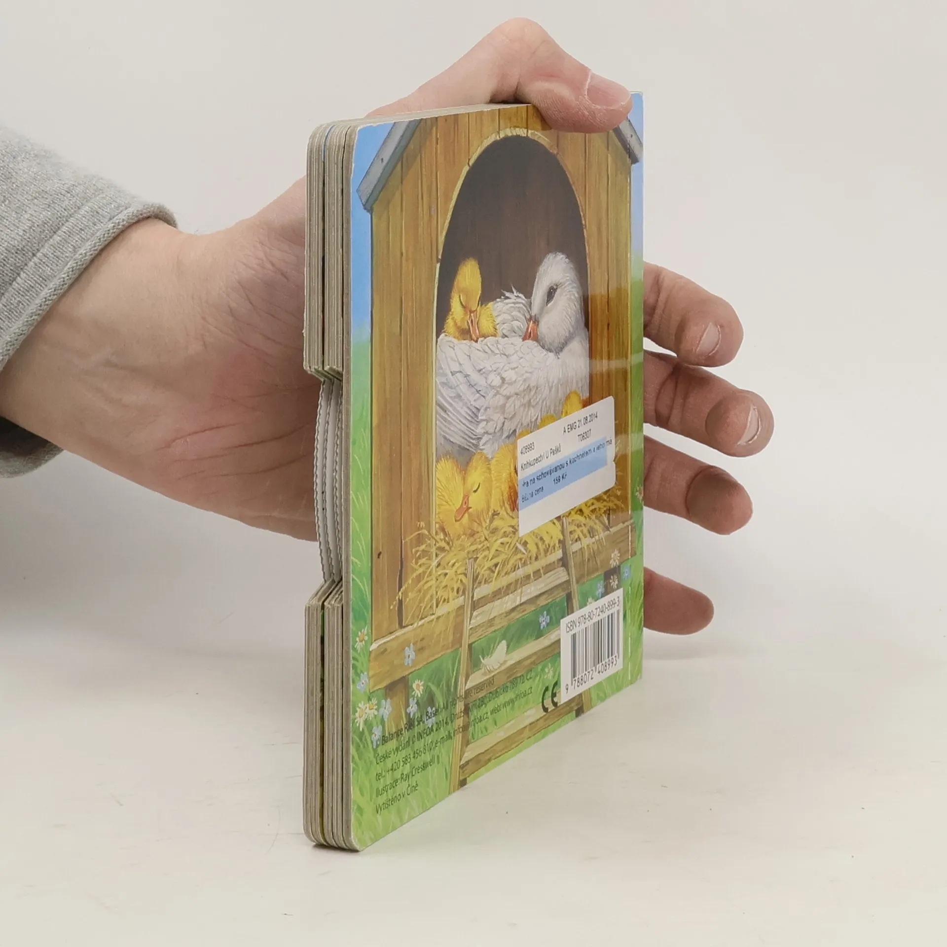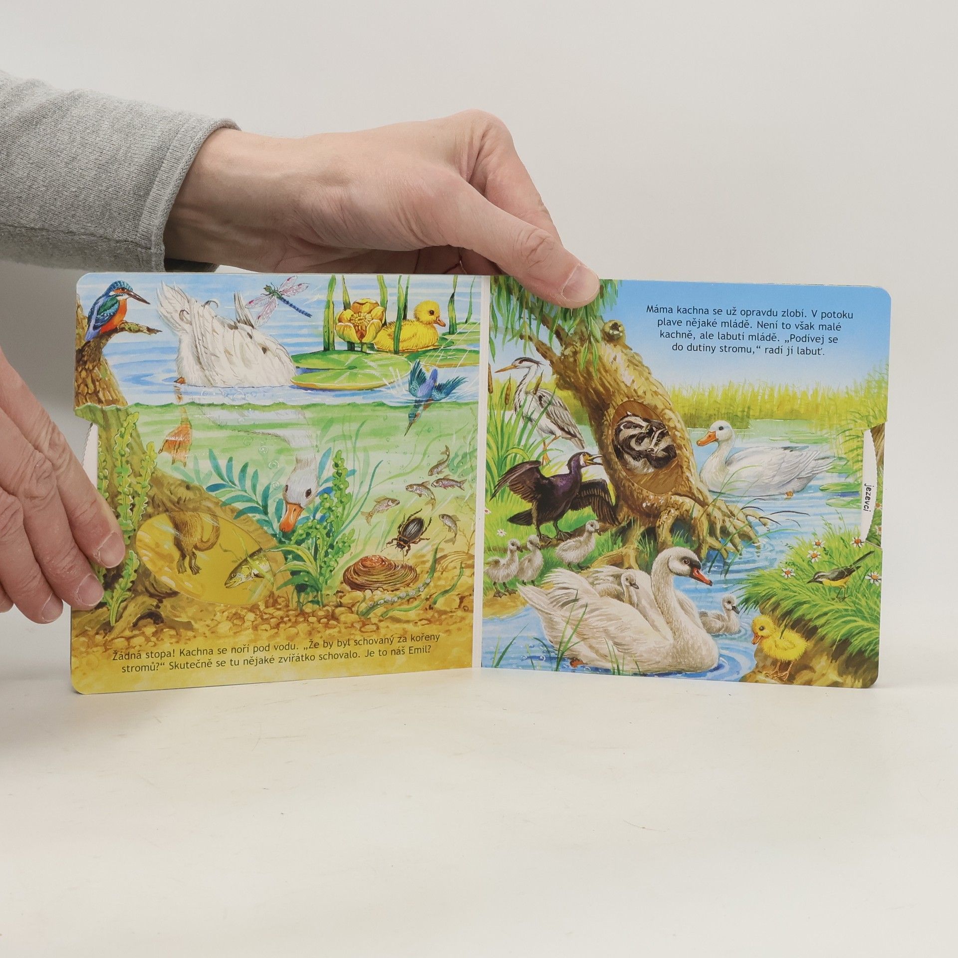 Interaktivní leporelo s otočným kolečkem a příběhem o neposedném kachněti. Děti pomocí otočného kolečka hledají, kam se mohlo kachně schovat svojí mámě, a přitom nacházejí další zvířátka.