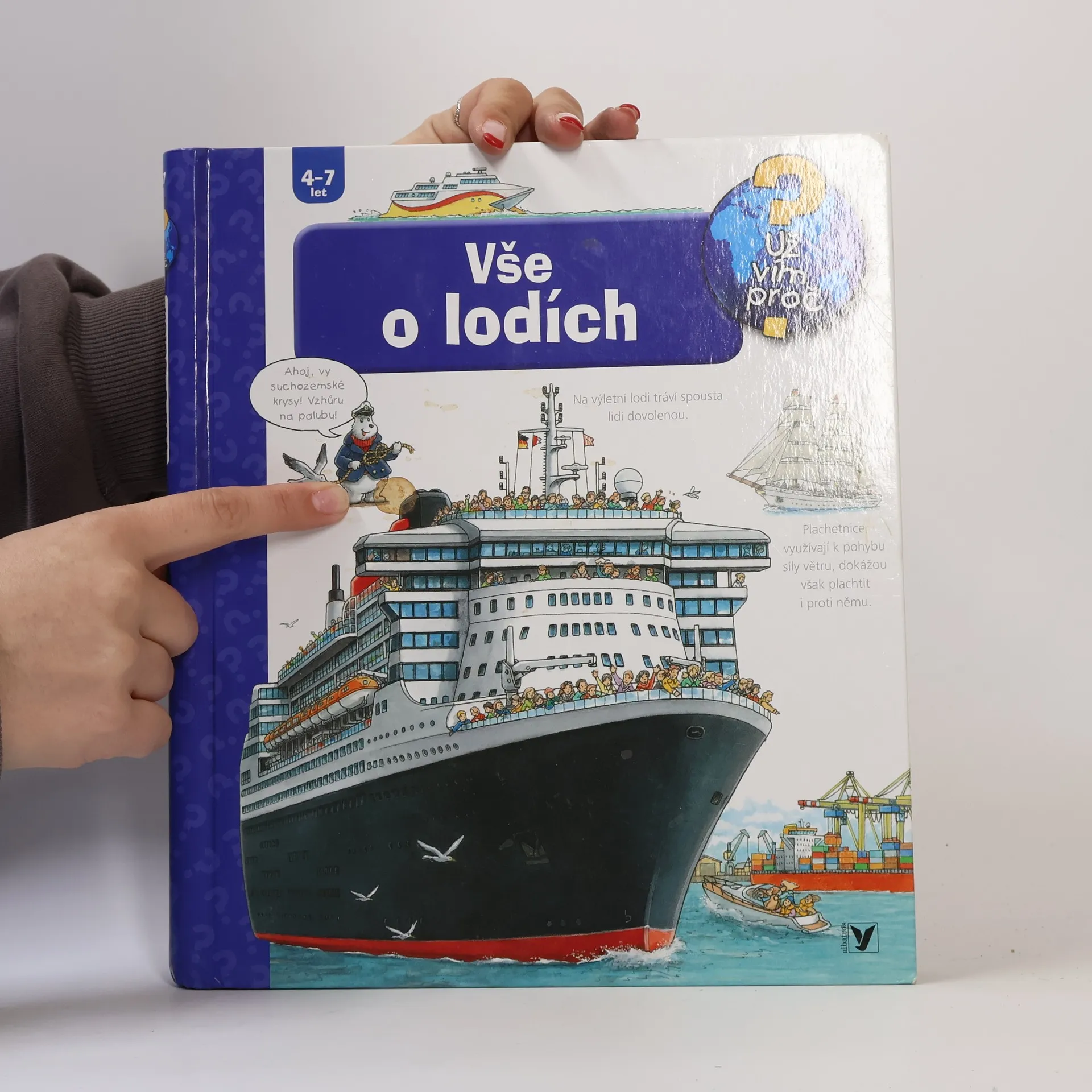 Víš, jak se řídí loď? A jak je vůbec možné, že plují po vodě? Víš, co je to námořnická latina? Kniha Vše o lodích ti srozumitelně a zábavně vše vysvětlí, a dokonce se otevíracími okénky podíváš do trupu zaoceánského parníku a pod ruce samotnému kapitánovi.