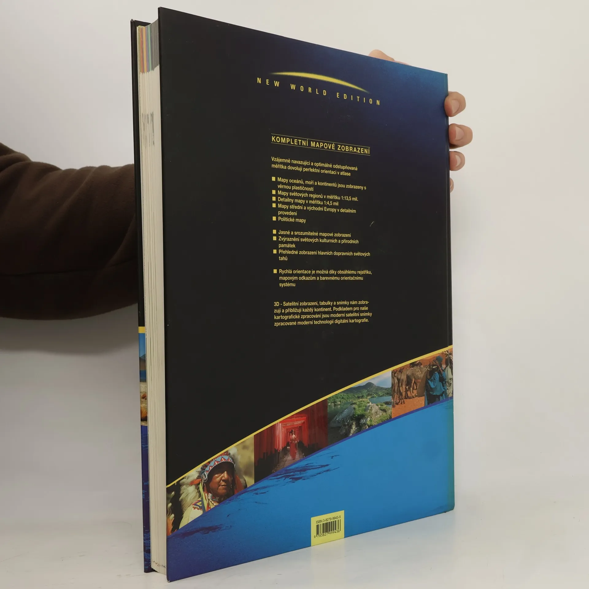 Vzájemně navazující a optimálně odstupňovaná měřítka dovolují perfektní orientaci v atlase. Mapy oceánů, moří a kontinentů jsou zobrazeny s věrnou plastičností.Mapy světových regionů v měřítku 1:13,5 mil. Detailní mapy v měřítku 1:4,5 mil. Mapy střední a východní Evropy v detailním provedení. Politické mapy. Jasné a srozumitelné mapové zobrazení. Zvýraznění světových kulturních a přírodních památek. Přehledné zobrazení hlavních dopravních světových tahů. Rychlá orientace je možná díky obsáhlému rejstříku, mapovým odkazům a barevnému orientačnímu systému.3D - Satelitní zobrazení, tabulky a snímky zobrazují a přibližují každý kontinent. Podkladem pro kartografické zpracování jsou moderní satelitní snímky zpracované moderní technologií digitální kartografie.