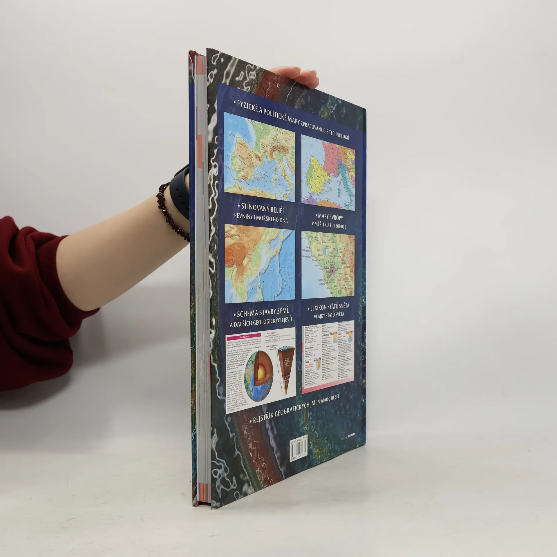 Politické a fyzickogeografické mapy se stínovaným reliéfem pevniny i mořského dna. Mapy zpracované nejnovějšími GIS technologiemi. Kniha obsahuje také schéma stavby Země a dalších geologických jevů. Aktuální lexikon států světa, vlajky zemí, časová pásma. Rejstřík obsahující 60 000 hesel. Zeměpisný atlas pro žáky i studenty.