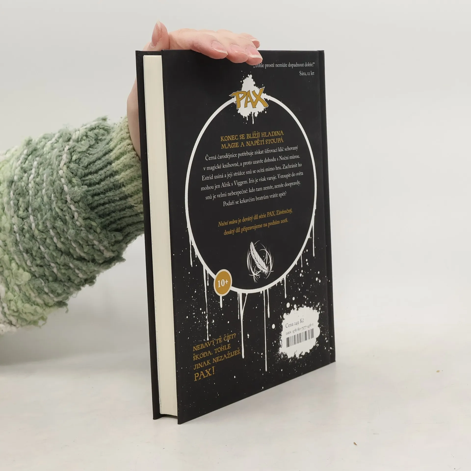 Konec se blíží! Hladina magie a napětí v devátém díle série PAX stoupá! Černá čarodějnice uzavírá osudovou dohodu s noční můrou a Estridin strážce snů se tím ocitá mimo hru. Krkavčí bratři Alrik a Viggo se vydávají Estrid zachránit do jejích snů. Iris je varuje, že vstoupit do světa snů je velmi nebezpečné: kdo zemře tam, zemře doopravdy… Pro čtenáře od deseti let.