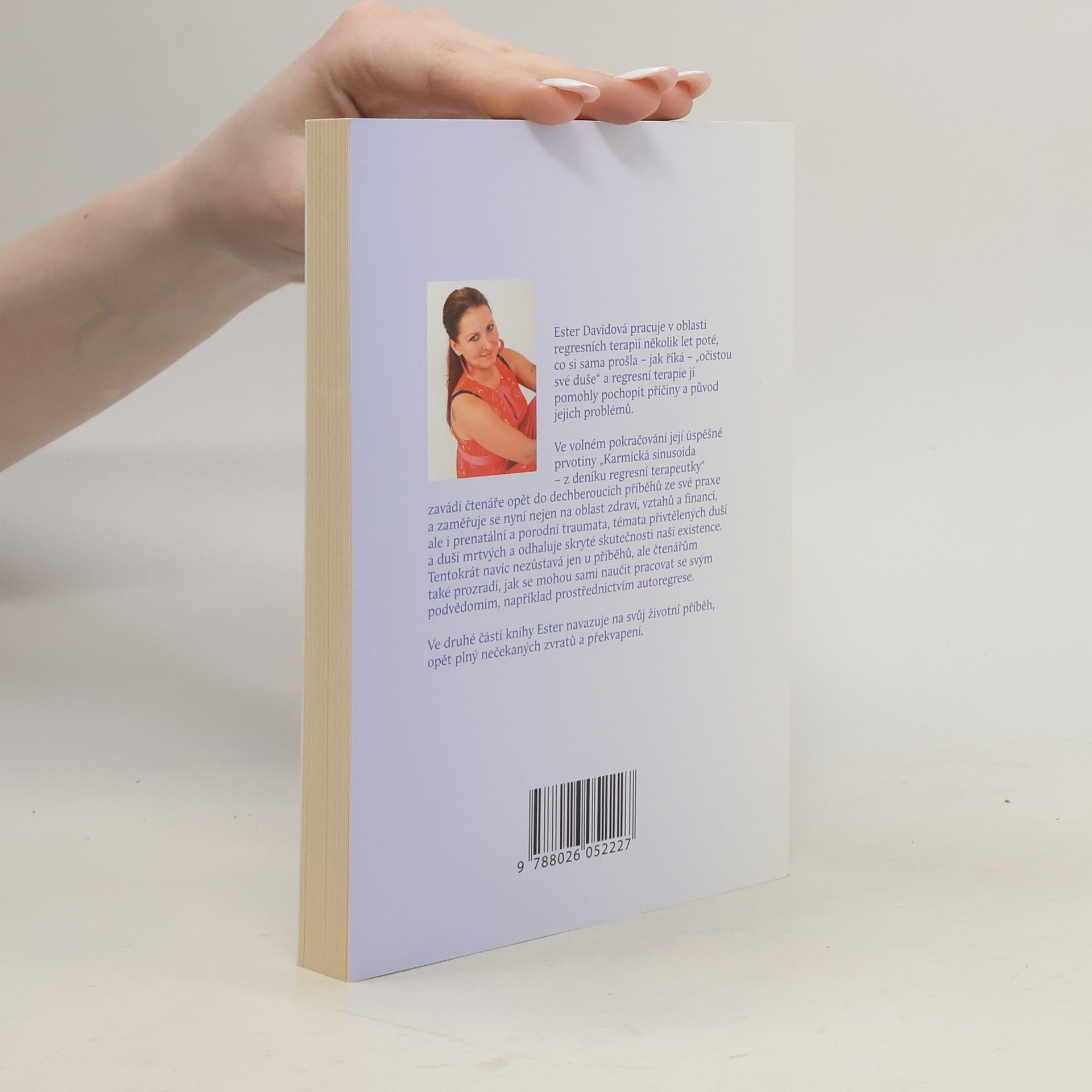 Ester Davidová pracuje v oblasti regresních terapií několik let poté, co si sama prošla - jak říká - očistou své duše a regresní terapie jí pomohly pochopit příčiny a původ jejich problémů. Ve volném pokračování její úspěšné prvotiny "Karmická sinusoida - z deníku regresní terapeutky" zavádí čtenáře opět do dech beroucích příběhů ze své praxe a zaměřuje se nyní nejen na oblast zdraví, vztahů a financí, ale i prenatální a porodní traumata, témata přivtělených duší a duší mrtvých a odhaluje skryté skutečnosti naší existence. Tentokrát navíc nezůstává jen u příběhů, ale čtenářům také prozradí, jak se mohou sami naučit pracovat se svým podvědomím, například prostřednictvím autoregrese. Ve druhé části knihy Ester navazuje na svůj životní příběh, opět plný nečekaných zvratů a překvapení. (Okno do mé duše)