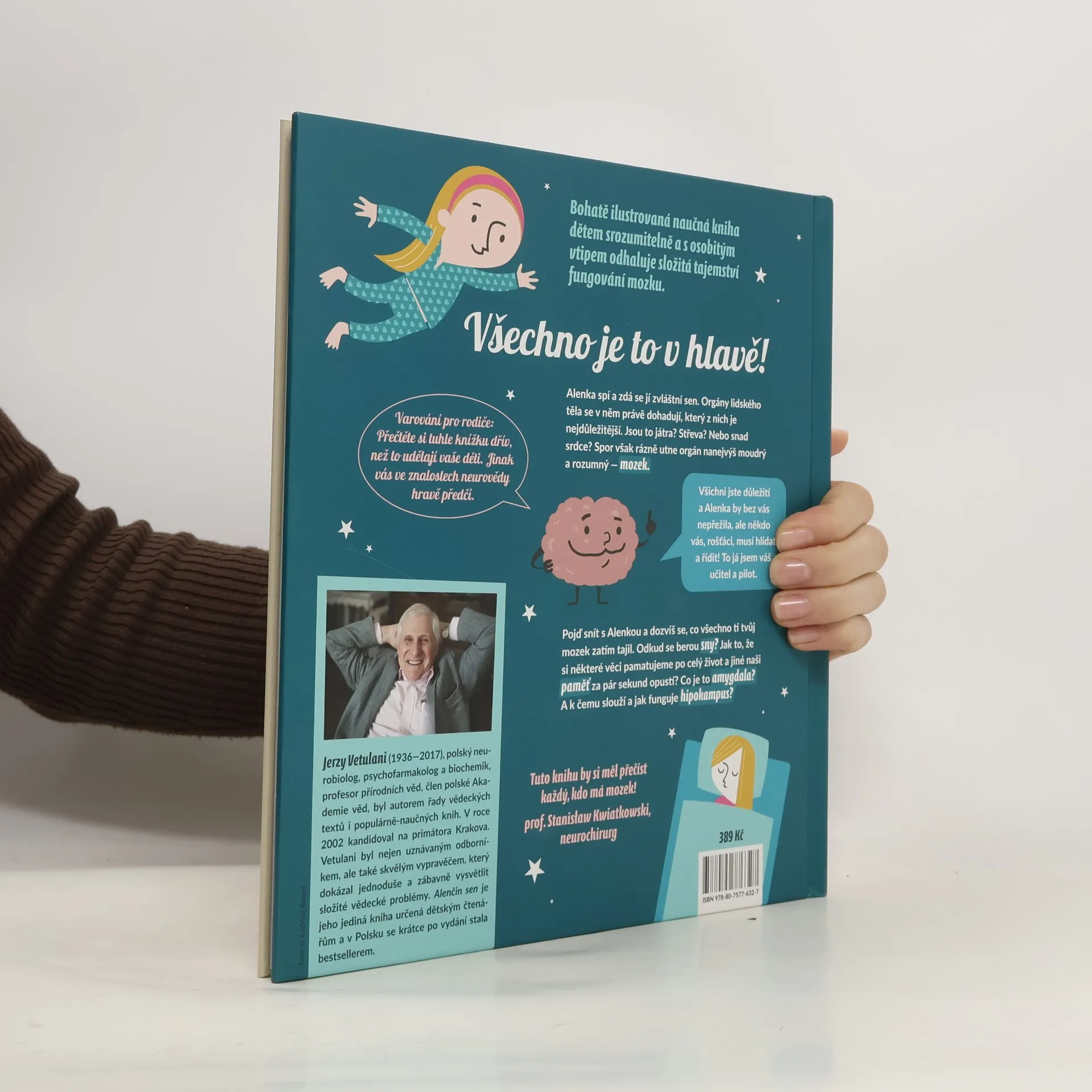 Když Alenka spí, probouzejí se neurony. Popravdě řečeno, ony nikdy nespí, nanejvýš si někdy potřebují trochu odpočinout. Dnes v noci připravil mozek Alence neobyčejný sen, ve kterém jí bude vyprávět o tom, jak řídí celé tělo. Pojď snít s Alenkou a objevíš tolik úžasných věcí, až se ti bude tajit dech. Zábavná, bohatě ilustrovaná naučná kniha odhaluje dětem tajemství fungování mozku. Přináší spoustu informací, a přesto čtenáře nezahltí. Je názorná, srozumitelně a neobyčejně poutavě napsaná. A navíc je vtipná, takže ji děti (a rozhodně nejen ony!) budou číst jako napínavý dobrodružný příběh. Autor knihy Jerzy Vetulani byl nejen světově uznávaným odborníkem, ale také skvělým vypravěčem, který dokázal jednoduše a zábavně vysvětlit složité vědecké problémy. Alenčin sen je jeho jediná kniha určená dětským čtenářům. Pro děti od šesti let.