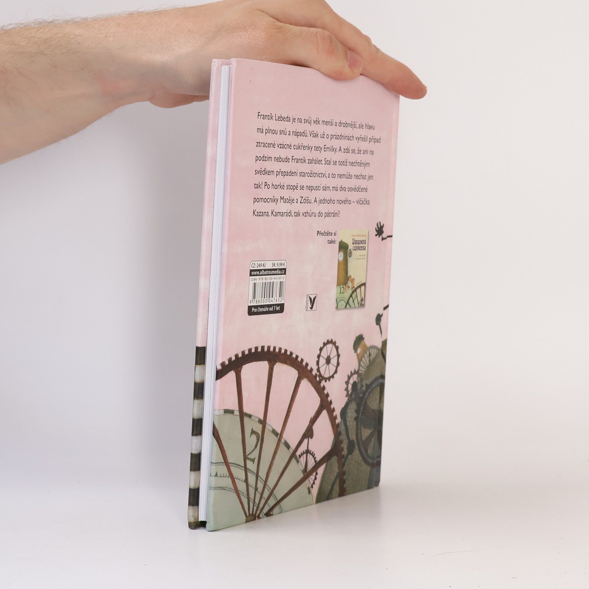 Frantík Lebeda je na svůj věk menší a drobnější, ale hlavu má plnou snů a nápadů. Však už o prázdninách vyřešil případ ztracené vzácné cukřenky tety Emilky. A zdá se, že ani na podzim nebude Frantík zahálet. Stal se totiž nechtěným svědkem přepadení starožitnictví, a to nemůže nechat jen tak! Po horké stopě se nepustí sám, má dva osvědčené pomocníky Matěje a Zdíšu. A jednoho nového – vlčáčka Kazana. Kamarádi, tak vzhůru do pátrání! Volné pokračování knížky Ukradená cukřenka.
