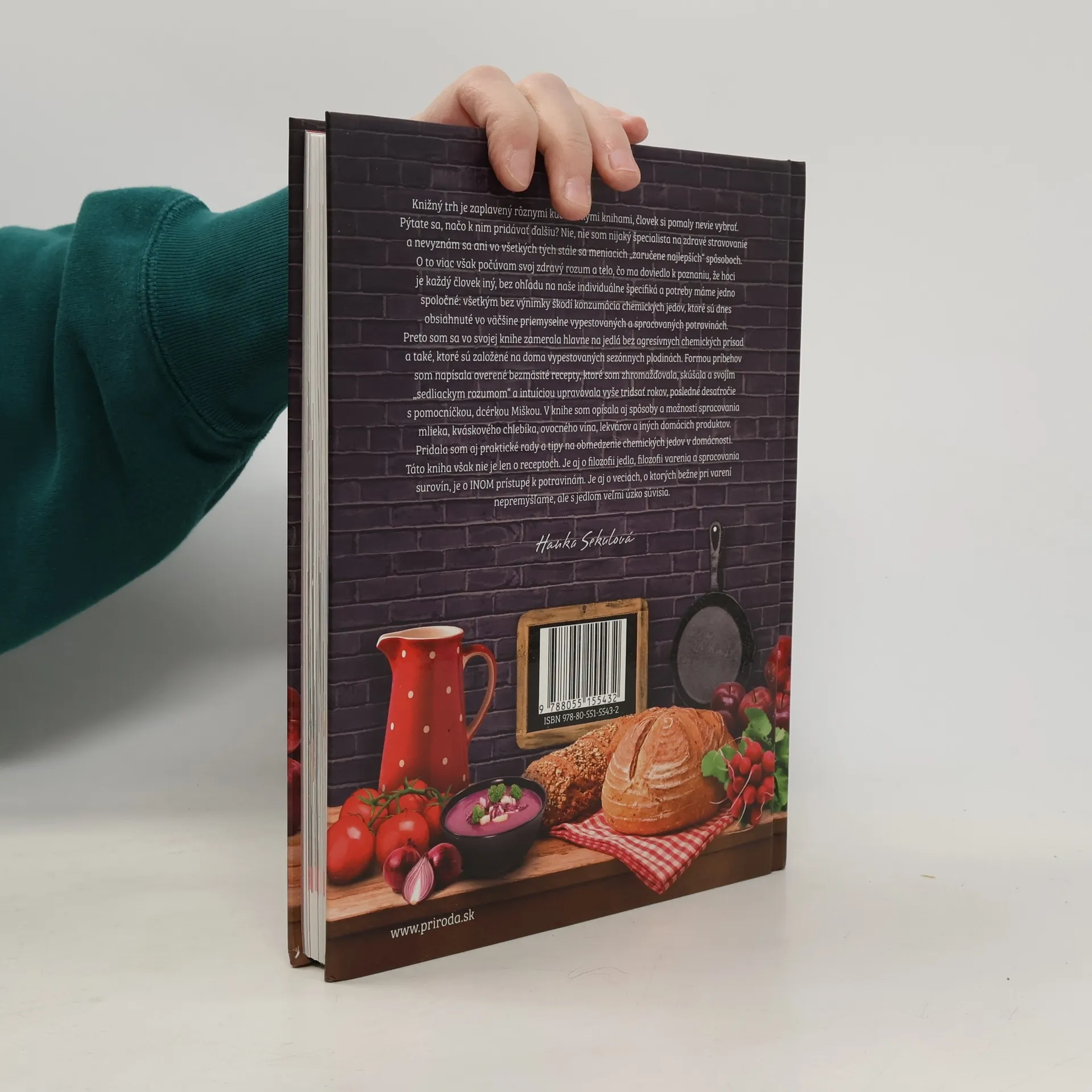 Autorka Hanka Sekulová už dávno prišla k poznaniu, že nám všetkým bez výnimky škodí konzumácia chemických jedov, ktoré sú dnes obsiahnuté vo väčšine priemyselne vypestovaných a spracovaných potravín. Vyše tridsať rokov zbierala a upravovala overené bezmäsité recepty na jedlá bez chemických prísad a také, ktoré sú založené na doma vypestovaných sezónnych plodinách. V knihe ponúka aj návody na spracovanie mlieka, kváskového chleba, ovocného vína, lekvárov a iných domácich produktov. K receptom na zdravé dobroty pridala aj praktické rady a tipy, ako obmedziť použitie chemických látok v domácnosti. Táto kniha však nie je len o receptoch. Je aj o filozofii jedla, varenia a spracovania surovín. Je aj o veciach, o ktorých bežne pri varení nepremýšľame, ale s jedlom veľmi úzko súvisia.