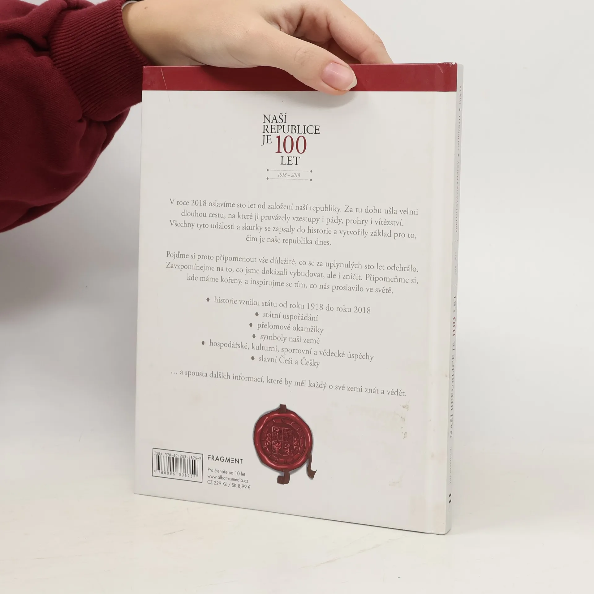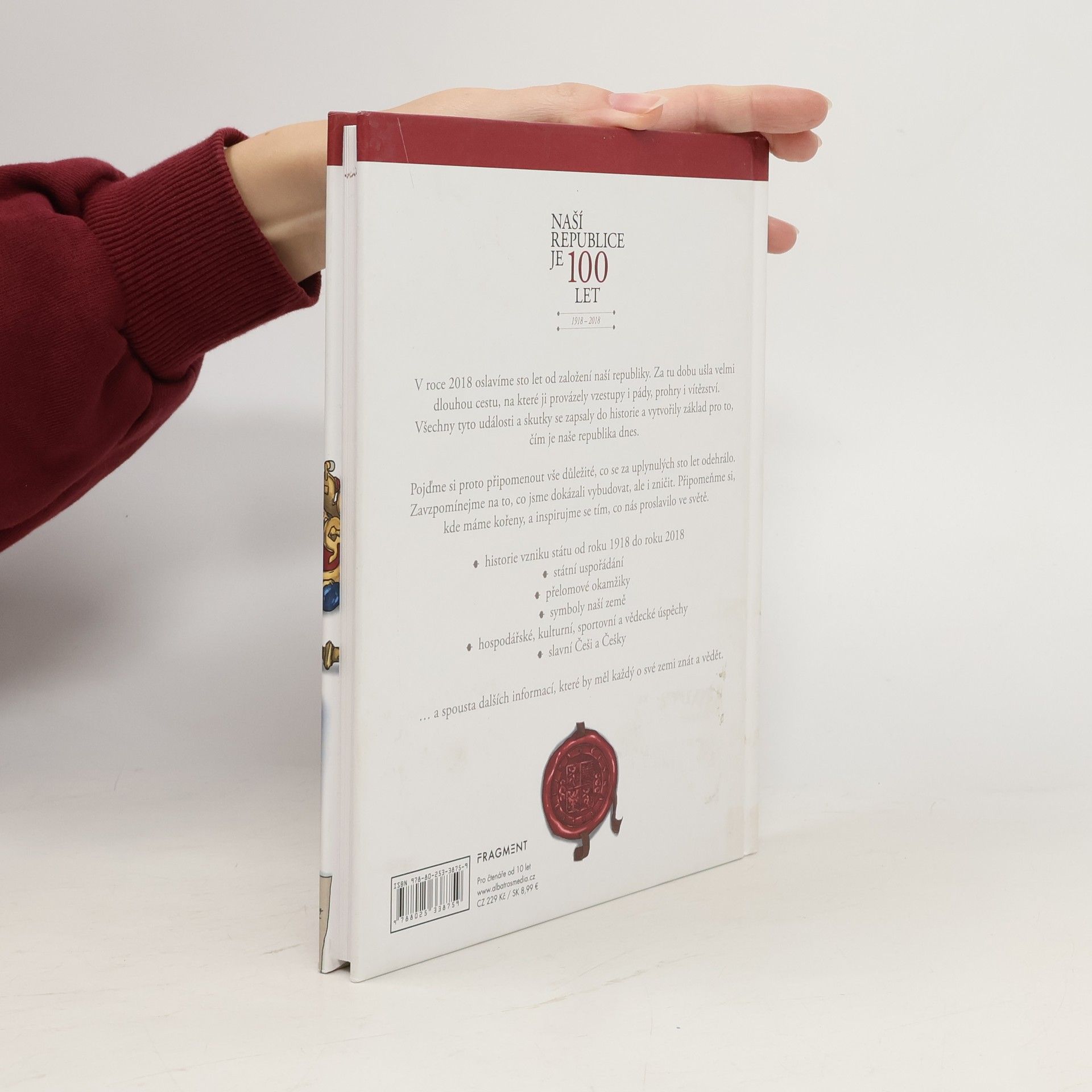 V roce 2018 oslavíme sto let od založení naší republiky. Za tu dobu ušla velmi dlouhou cestu, na které ji provázely vzestupy i pády, prohry i vítězství. Všechny tyto události a skutky se zapsaly do historie a vytvořily základ pro to, čím je naše republika dnes. Pojďme si proto připomenout vše důležité, co se za uplynulých sto let odehrálo. Zavzpomínejme na to, co jsme dokázali vybudovat, ale i zničit. Připomeňme si, kde máme kořeny a inspirujme se tím, co nás proslavilo ve světě. • historie vzniku státu od roku 1918 do roku 2018 • státní uspořádání • přelomové okamžiky • symboly naší země • hospodářské, kulturní, sportovní a vědecké úspěchy • slavní Češi a Češky … a spousta dalších informací, které by měl každý o své zemi znát a vědět.