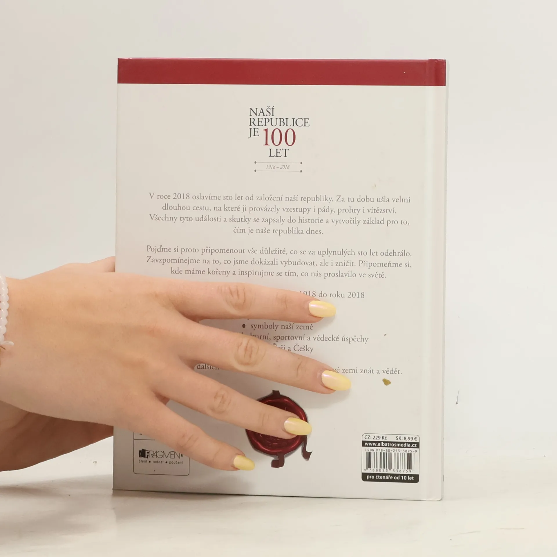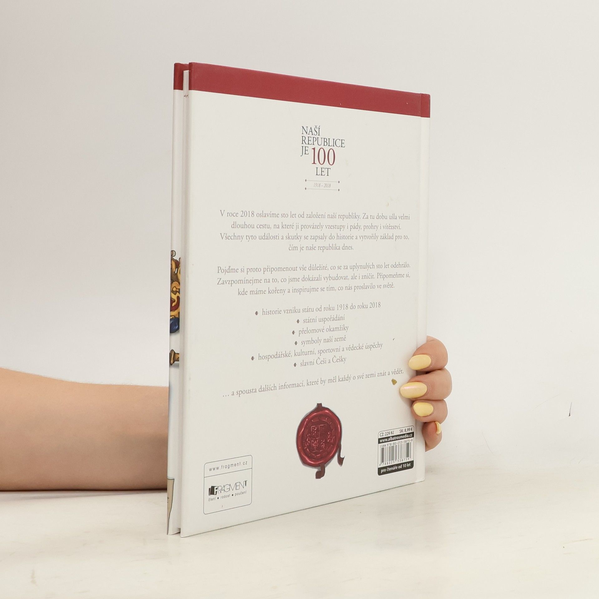 V roce 2018 oslavíme sto let od založení naší republiky. Za tu dobu ušla velmi dlouhou cestu, na které ji provázely vzestupy i pády, prohry i vítězství. Všechny tyto události a skutky se zapsaly do historie a vytvořily základ pro to, čím je naše republika dnes. Pojďme si proto připomenout vše důležité, co se za uplynulých sto let odehrálo. Zavzpomínejme na to, co jsme dokázali vybudovat, ale i zničit. Připomeňme si, kde máme kořeny a inspirujme se tím, co nás proslavilo ve světě. • historie vzniku státu od roku 1918 do roku 2018 • státní uspořádání • přelomové okamžiky • symboly naší země • hospodářské, kulturní, sportovní a vědecké úspěchy • slavní Češi a Češky … a spousta dalších informací, které by měl každý o své zemi znát a vědět.