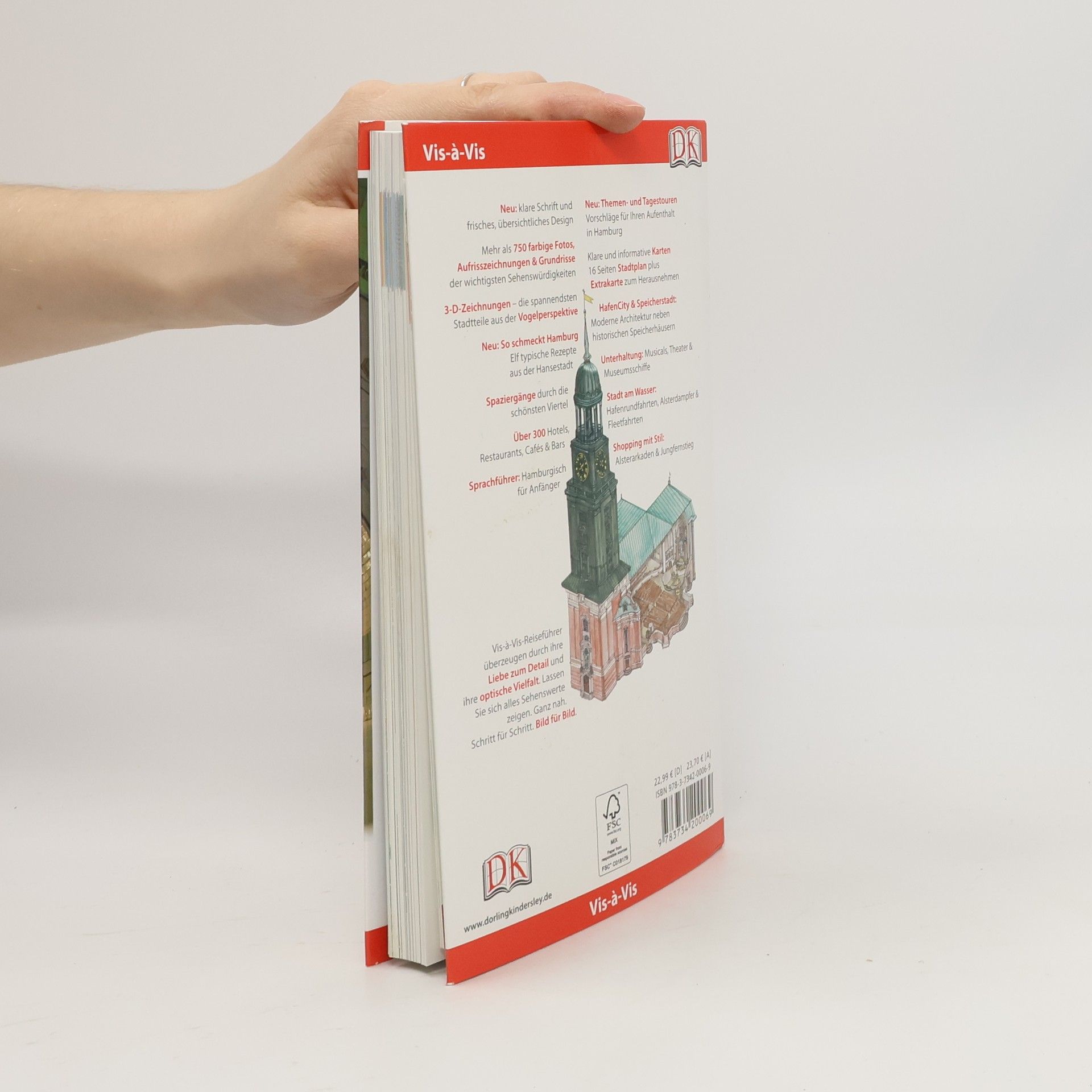 Hamburg, auch „Tor zur Welt“ genannt, ist Deutschlands zweitgrößte Stadt und zählt zu den bedeutendsten Hafen- und Handelsstädten Europas. Sie ist bekannt für St. Pauli, die HafenCity, die Alsterarkaden und den Gänsemarkt. Der Vis-à-Vis Hamburg führt zu den schönsten Orten, den besten Restaurants und schlägt abwechslungsreiche Themen- und Tagestouren vor. Mit dem einzigartigen Mini-Kochbuch können Sie Hamburg auch kulinarisch entdecken. -Abwechslungsreiche Tourenvorschläge für jeden Geschmack: Geschichte und Kultur, Ein Tag am Wasser, Familientag, Zwei Tage in Hamburg oder Fünf Tage in Hamburg -Gezeichnete Spaziergänge um das Rathaus und die Alsterarkaden, durch die schönsten Straßen der Neustadt, durch die Speicherstadt, entlang der Reeperbahn und um die Alster -Aufrisszeichnungen der wichtigsten Sehenswürdigkeiten, zum Beispiel des Rathauses, des Maritimen Museums oder der Cap San Diego -Mit Ausflugstipps für Sylt, Helgoland, Nordfriesische und Ostfriesische Inseln und Bremen -Wetterfeste Extra-Karte zum Herausnehmen -Über 750 hochwertige Farbfotografien -Mini-Kochbuch mit elf typischen Rezepten aus Hamburg – von Labskaus bis Franzbrötchen