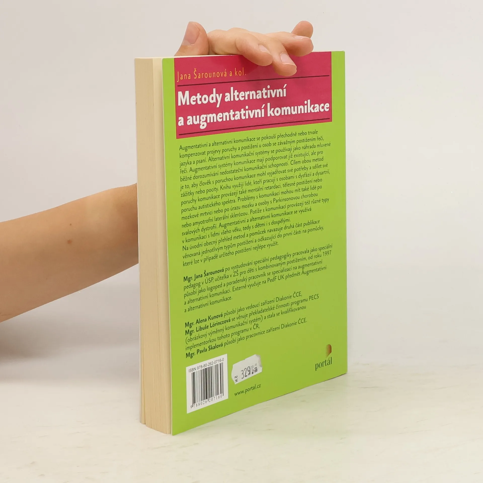 Augmentativní a alternativní komunikace se pokouší přechodně nebo trvale kompenzovat projevy poruchy a postižení u osob se závažným postižením řeči, jazyka a psaní. Alternativní komunikační systémy se používají jako náhrada mluvené řeči. Augmentativní systémy komunikace mají podporovat již existující, ale pro běžné dorozumívání nedostatečné komunikační schopnosti. Cílem obou metod je to, aby člověk s poruchou komunikace mohl vyjadřovat své potřeby a sdílet své pocity nebo zážitky. Knihu využijí lidé, kteří pracují s osobami s dysfázií a dysartrií, poruchy komunikace provázejí také mentální retardaci, tělesné postižení nebo poruchy autistického spektra. Problémy s komunikací mohou mít také lidé po mozkové mrtvici nebo po úrazu mozku a osoby s Parkinsonovou chorobou nebo amyotrofií laterální sklerózou. Potíže s komunikací provázejí též různé typy svalových dystrofií. Augmentativní a alternativní komunikace se využívá v komunikaci s lidmi všeho věku, tedy s dětmi i dospělými. Na úvodní obecný přehled metod a pomůcek navazuje druhá část publikace věnovaná jednotlivým typům postižení a odkazující do první části na pomůcky, které lze v případě určitého postižení nejlépe využít.