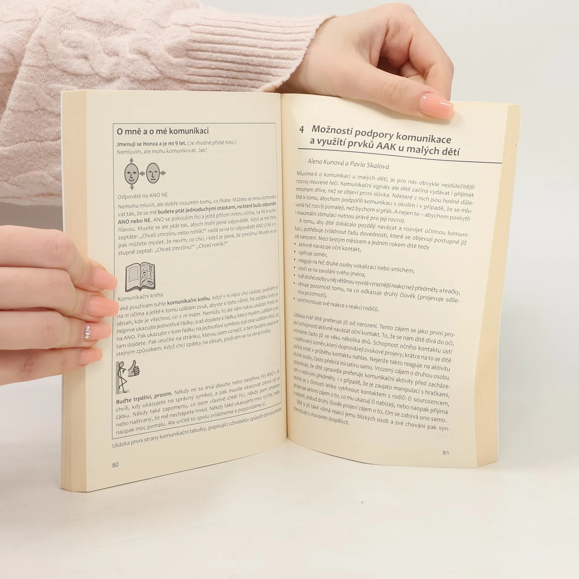 Augmentativní a alternativní komunikace se pokouší přechodně nebo trvale kompenzovat projevy poruchy a postižení u osob se závažným postižením řeči, jazyka a psaní. Alternativní komunikační systémy se používají jako náhrada mluvené řeči. Augmentativní systémy komunikace mají podporovat již existující, ale pro běžné dorozumívání nedostatečné komunikační schopnosti. Cílem obou metod je to, aby člověk s poruchou komunikace mohl vyjadřovat své potřeby a sdílet své pocity nebo zážitky. Knihu využijí lidé, kteří pracují s osobami s dysfázií a dysartrií, poruchy komunikace provázejí také mentální retardaci, tělesné postižení nebo poruchy autistického spektra. Problémy s komunikací mohou mít také lidé po mozkové mrtvici nebo po úrazu mozku a osoby s Parkinsonovou chorobou nebo amyotrofií laterální sklerózou. Potíže s komunikací provázejí též různé typy svalových dystrofií. Augmentativní a alternativní komunikace se využívá v komunikaci s lidmi všeho věku, tedy s dětmi i dospělými. Na úvodní obecný přehled metod a pomůcek navazuje druhá část publikace věnovaná jednotlivým typům postižení a odkazující do první části na pomůcky, které lze v případě určitého postižení nejlépe využít.
