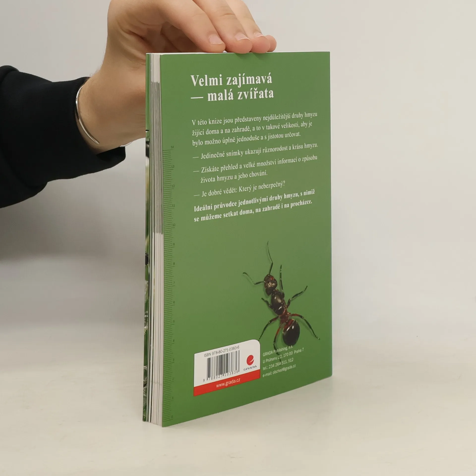 V této praktické příručce vám představíme nejběžnější druhy, které se pohybují ve vašem okolí – brouky, motýly, ploštice, blanokřídlý i dvoukřídlý hmyz. Zjistěte podrobnosti o světluškách, slunéčkách, jepicích, znakoplavkách, mouchách, pestřenkách, mravencích, šídlech a vážkách. Ověřte si, který hmyz je užitečný, který nebezpečný a který můžete snadno zaměnit. Přečtěte si stručné informace o jejich životě, zajímavosti o jednotlivých druzích a prohlédněte si výstižné fotografie hmyzu i jeho velikost ve srovnání s velikostí běžné mince. Budete překvapeni, jak zajímavý může hmyz být. skrýt anotaci