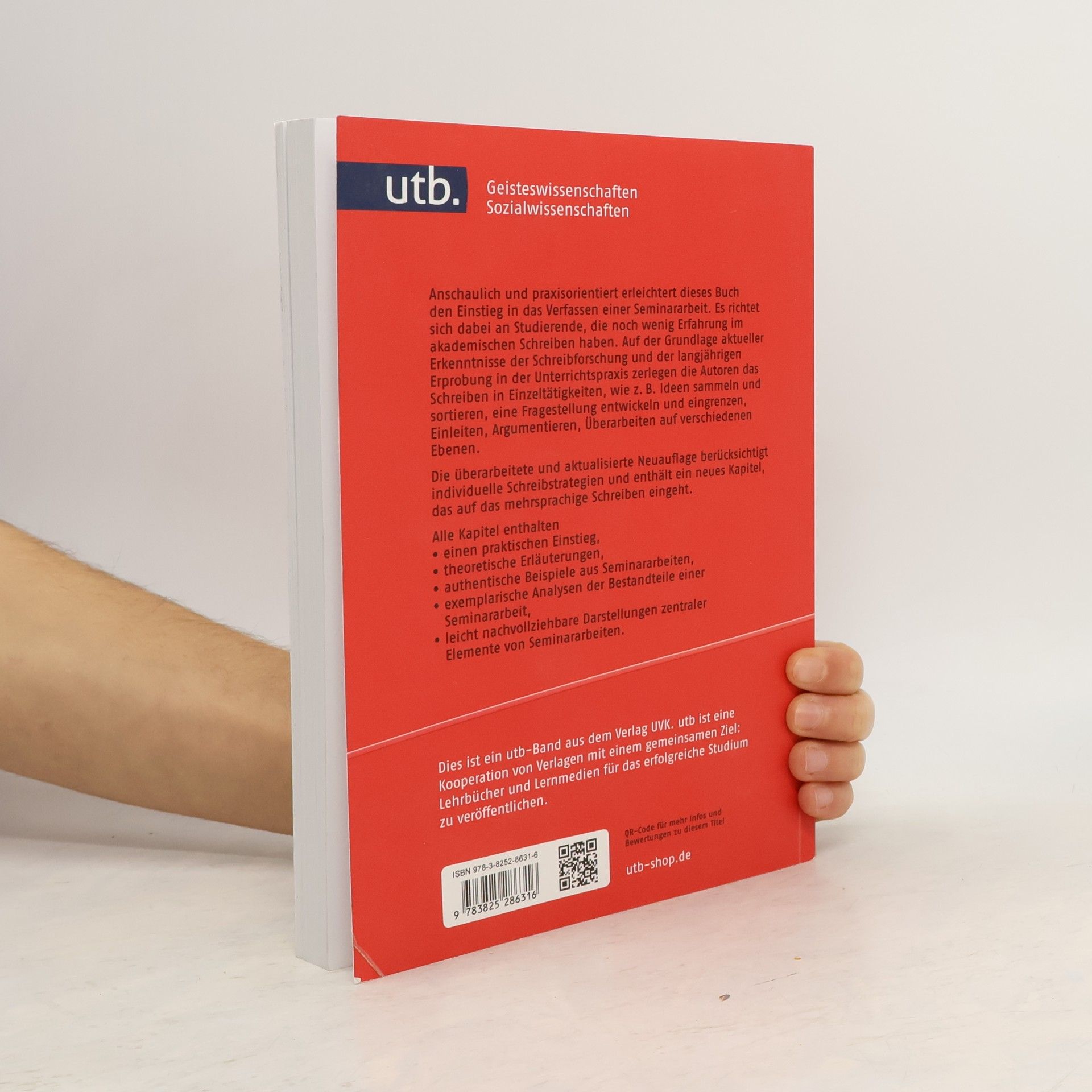 Gegenstand des einführenden Lehrbuchs ist das Erstellen einer Seminararbeit in den Geistes- und Sozialwissenschaften. An den Ergebnissen der Schreibprozessforschung orientiert und auf der Basis langjähriger Unterrichtspraxis wurde ein Konzept entwickelt, bei dem das Schreiben in Einzeltätigkeiten untergliedert wird, wie z. B. Einleiten, Gliedern, Argumentieren, Überarbeiten etc. Alle Kapitel enthalten: o theoretische Erläuterungen, o authentische Beispiele aus Seminararbeiten, o exemplarische Analysen der Bestandteile einer Seminararbeit, o tabellarische Übersichten wichtiger Merkmale des Textaufbaus, o leicht nachzuvollziehende Darstellungen zentraler Elemente von Seminararbeiten.