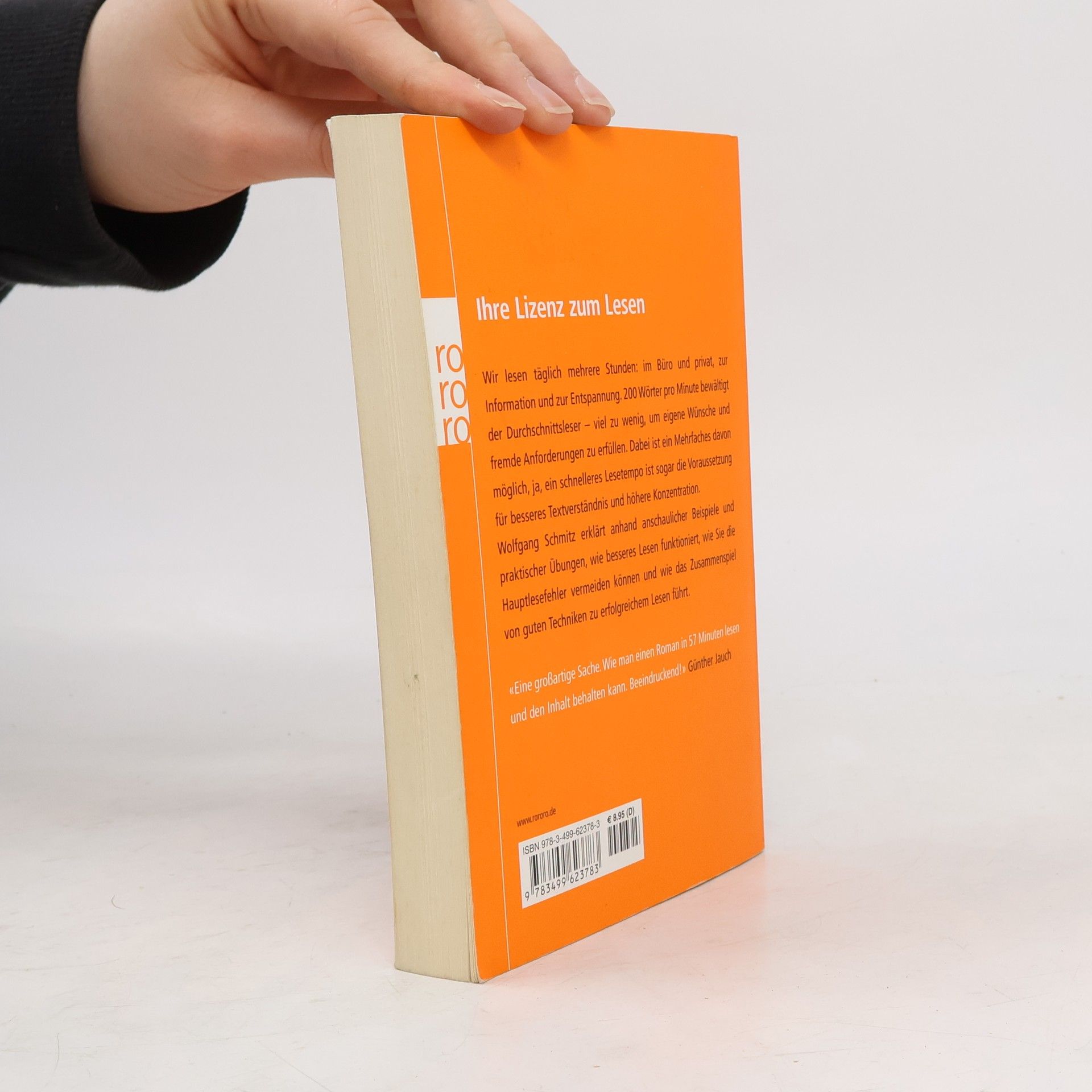 Ihre Lizenz zum LesenWir lesen täglich mehrere Stunden: im Büro und privat, zur Information und zur Entspannung. 200 Wörter pro Minute bewältigt der Durchschnittsleser - viel zu wenig, um eigene Wünsche und fremde Anforderungen zu erfüllen. Dabei ist ein Mehrfaches davon möglich, ja, ein schnelleres Lesetempo ist sogar die Voraussetzung für besseres Textverständnis und höhere Konzentration. Wolfgang Schmitz erklärt anhand anschaulicher Beispiele und praktischer Übungen, wie besseres Lesen funktioniert, wie Sie die Hauptlesefehler vermeiden können und wie das Zusammenspiel von guten Techniken zu erfolgreichem Lesen führt.„Eine großartige Sache. Wie man einen Roman in 57 Minuten lesen und den Inhalt behalten kann. Beeindruckend!“ (Günther Jauch)