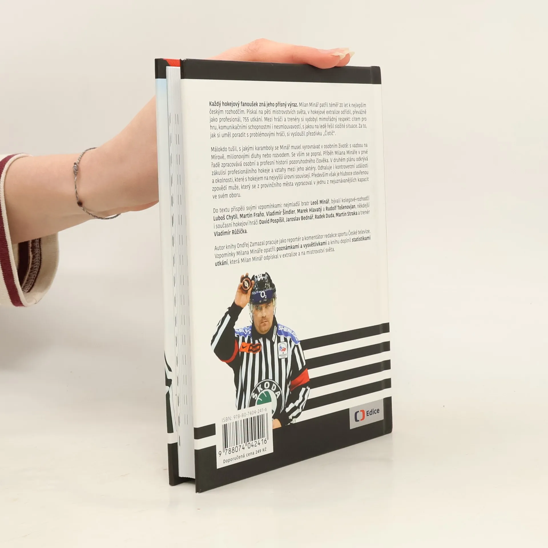 Milan Minář, známý svým přísným výrazem, byl téměř 20 let jedním z nejlepších českých hokejových rozhodčích. Pískal na 5 mistrovstvích světa a v hokejové extralize odřídil 755 utkání. Vyznačoval se respektem mezi hráči a trenéry díky svému citu pro hru, komunikačním schopnostem a nesmlouvavosti při řešení složitých situací. Jeho schopnost zvládat problémové hráče mu vynesla přezdívku „Čistič“. Málokdo však tušil, jaké osobní karamboly musel Minář překonat, včetně vazby, milionových dluhů a rozvodu. Příběh Milana Mináře zachycuje jeho osobní a profesní historii, odhaluje zákulisí profesionálního hokeje a vztahy mezi jeho aktéry, včetně kontroverzních událostí spojených s hokejem na nejvyšší úrovni. Je to hluboce otevřená zpověď muže, který se z provinčního města vypracoval na uznávanou autoritu v oboru. Do textu přispěli vzpomínkami členové jeho rodiny, bývalí kolegové rozhodčí a hokejoví hráči. Autor Ondřej Zamazal, reportér a komentátor České televize, doplnil Minářovy vzpomínky poznámkami a statistikami jeho odřízených utkání v extralize a na mistrovství světa.