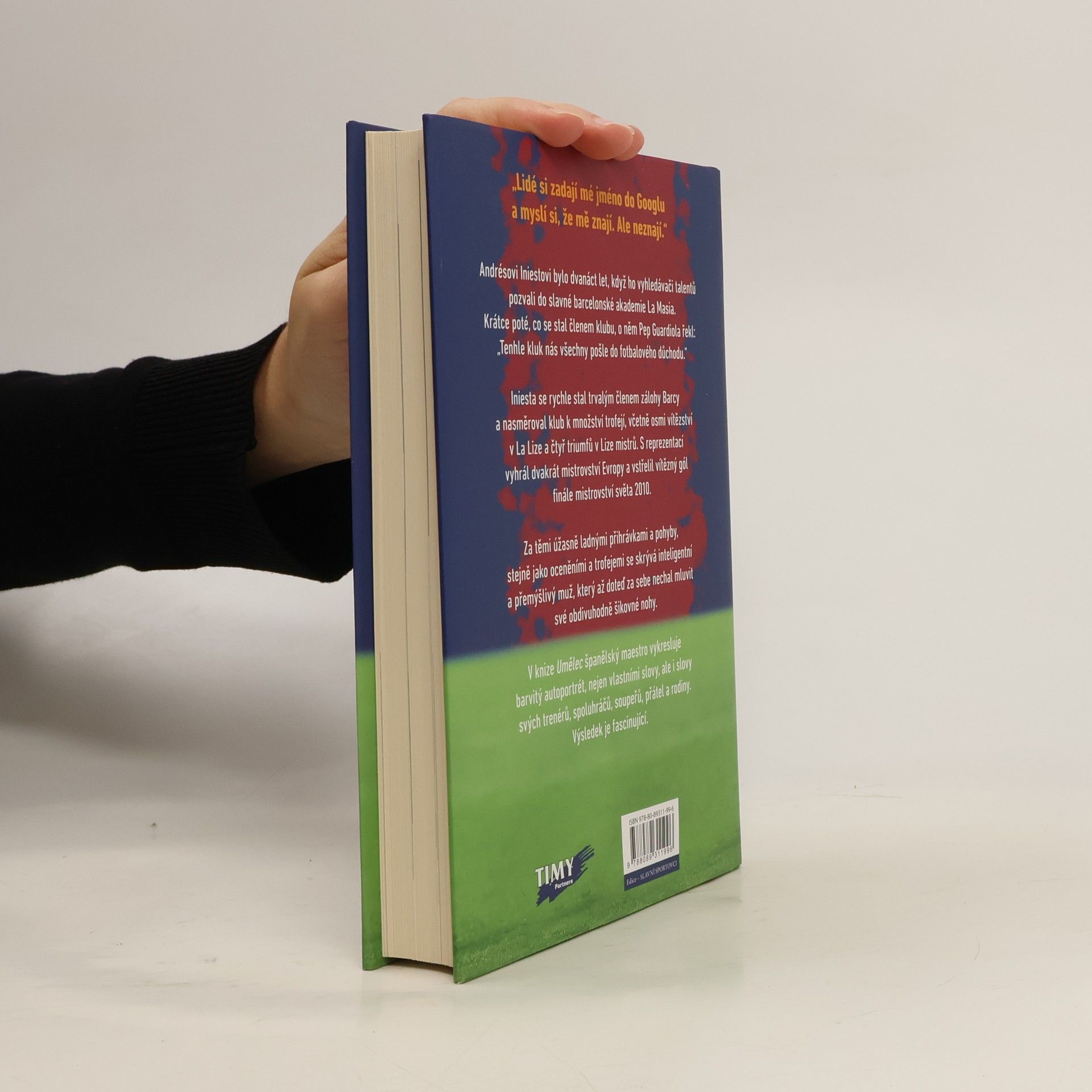 „Lidé si zadají mé jméno do Googlu a myslí si, že mě znají. Ale neznají.“ Andrésovi Iniestovi bylo dvanáct let, když ho vyhledávači talentů pozvali do slavné barcelonské akademie La Masia. Krátce poté, co se stal členem klubu, o něm Pep Guardiola řekl: „Tenhle kluk nás všechny pošle do fotbalového důchodu.“ Iniesta se rychle stal trvalým členem zálohy Barcy a nasměroval klub k množství trofejí, včetně osmi vítězství v La Lize a čtyř triumfů v Lize mistrů. S reprezentací vyhrál dvakrát mistrovství Evropy a vstřelil vítězný gól finále mistrovství světa 2010. Za těmi úžasně ladnými přihrávkami a pohyby, stejně jako oceněními a trofejemi se skrývá inteligentní a přemýšlivý muž, který až doteď za sebe nechal mluvit své obdivuhodně šikovné nohy. V knize Umělec španělský maestro vykresluje barvitý autoportrét, nejen vlastními slovy, ale i slovy svých trenérů, spoluhráčů, soupeřů, přátel a rodiny. Výsledek je fascinující.